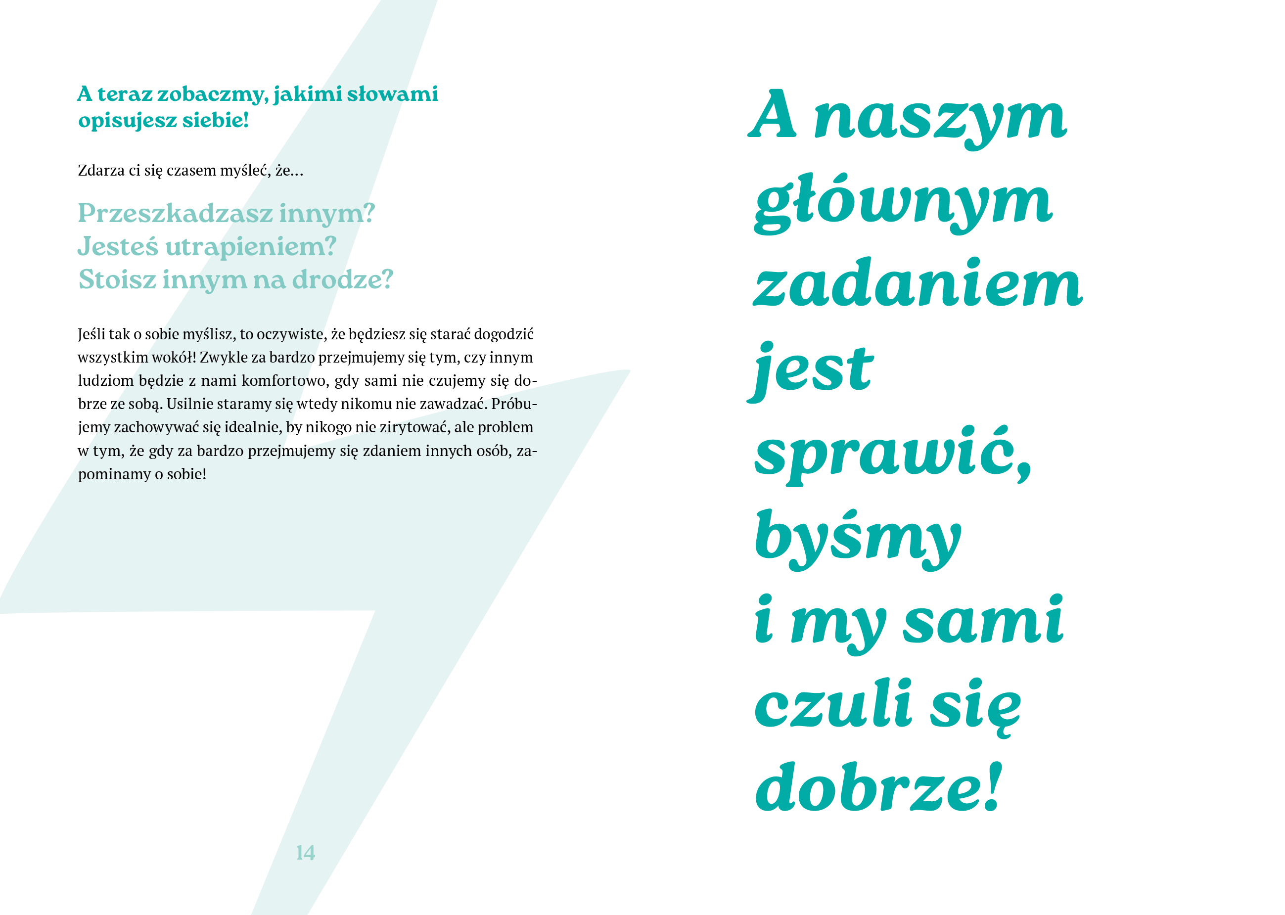 Opis produktuZasady bezpieczeństwaNIE jest ważniejsze niż TAK. Słowo NIE ma SUPER MOC. Daje siłę. Uczy pewności siebie. Pozwala w pełni decydować. To nie słowo TAK uczy dorosłości, ale właśnie: NIE. Naucz się DOBRZE mówić NIE! Jak powiedzieć NIE kolegom, którzy wyciągają cię na wagary? Jak odmówić dawania buziaków cioci, której nie lubisz? Jak nie zgadzać się na udział w dodatkowych zajęciach pozaszkolnych, na które nie masz czasu? Jak sprzeciwić się rodzicom, żeby ich nie wkurzyć? Jak mówić NIE w internecie? Odkryj, że mówienie NIE jest SUPER. Naucz się dobrze go używać i poznaj jego supersiłę. x