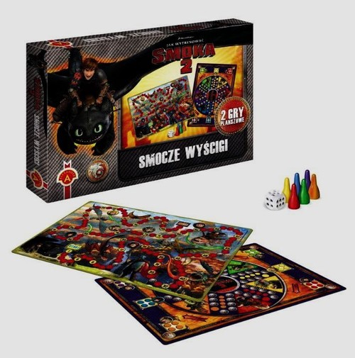 "Chińczyk" i "Wyścig" to zestaw gier dla całej rodziny. "Chińczyk" to wersja klasycznej gry losowej, przeznaczonej dla 2 do 6 osób. Można w niej stosować pewne taktyczne posunięcia. Ta gra o bardzo prostych zasadach zawsze wyzwala wiele emocji. "Wyścig" to gra o równie prostych zasadach. Czkawka, Szczerbatek i ich przyjaciele postanawiają pomóc tajemniczej Valce w opracowaniu mapy z trasą prowadzącą do dalekich przełęczy. Aby móc wyrysować mapę, śmiałkowie muszą najpierw dotrzeć do celu. Dołącz do smoczych jeźdźców i wystartuj w podniebnym wyścigu. Ten, kto pierwszy dotrze do mety i zdoła tym samym narysować mapę z trasą swojego lotu, wygra. Zawartość opakowania: dwustronna plansza, kostka do gry, 24 pionki, instrukcja.