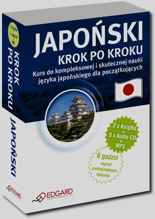 Japoński Krok po kroku kurs do kompleksowej nauki języka japońskiego od poziomu początkującego do średnio zaawansowanego (A1-B1). Polecany jest osobom zaczynającym naukę oraz wszystkim, którzy chcą doskonalić językowe umiejętności, poszerzyć zasób słownictwa oraz poprawić wymowę.
