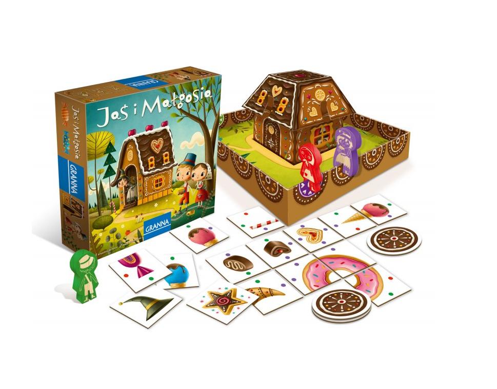 Opis produktuZasady bezpieczeństwaJaś i Małgosia to wesoła kooperacyjna gra planszowa dla całej rodziny,w której wspólnie staracie się pomóc tytułowym postaciom zdobyć pięć smakowitych pierniczków, jednocześnie nie dając złapać się Babie Jadze. Aby osiągnąć ten cel, musicie ze sobą współpracować, wykazać się sprytem i logicznym myśleniem. Zgarnijcie jak najszybciej pierniczki i ucieknijcie Babie Jadze! Zawartość pudełka