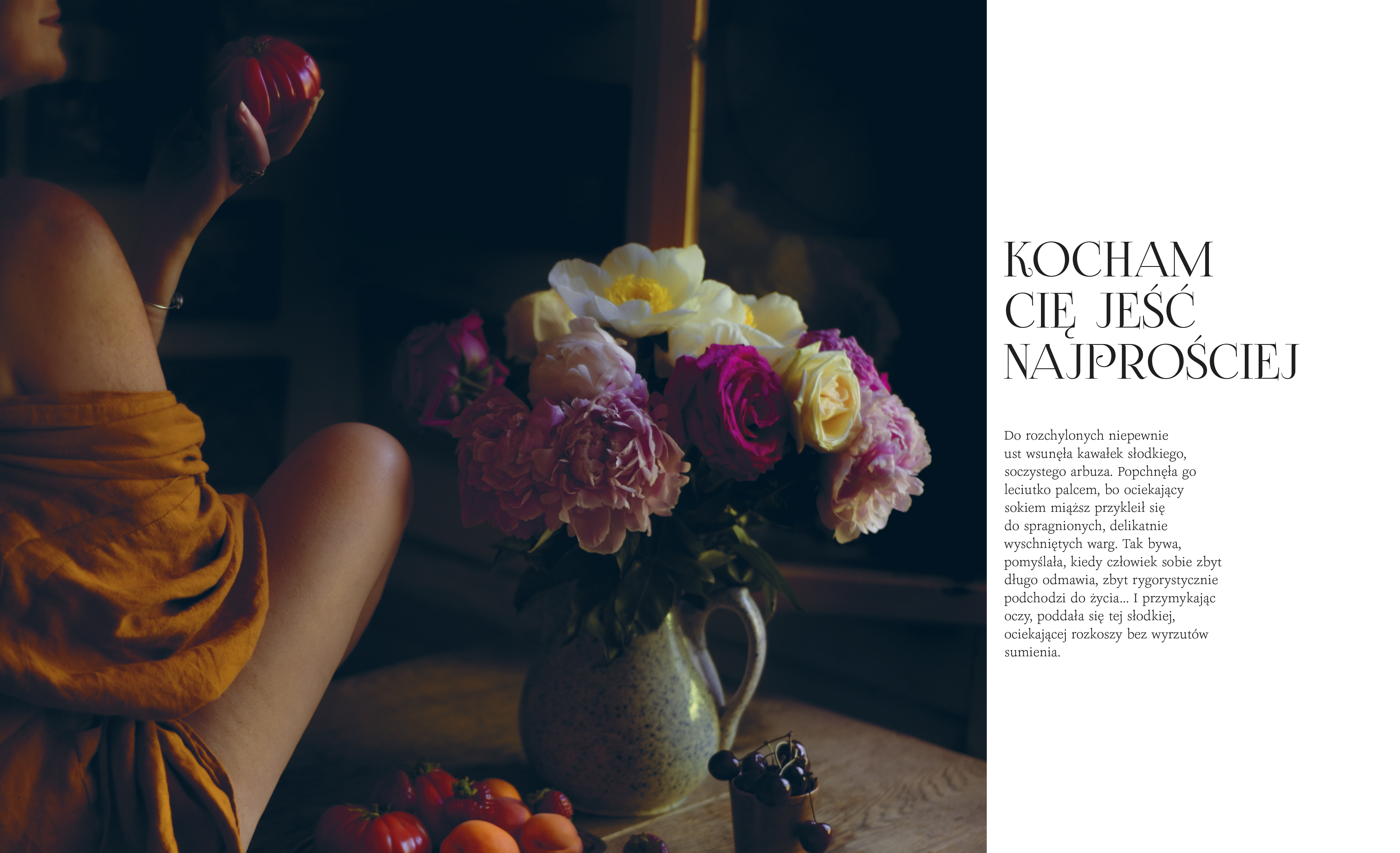 Jedzenie i życie można smakować wszędzie i wszystkimi zmysłami: jeść łyżką, skubać delikatnie palcami jak foccacię, próbować jak orecchiette z truflami albo wgryzać się w nie niczym w soczystego pomidora. Wystarczą proste, lecz oryginalne pomysły i świeże, domowe, lokalne składniki. Wyczarujesz z nich: szybką sałatę z arbuza, idealną na leniwe popołudnie, piżmową dynię pieczoną w soku jabłkowym z gorącą czekoladą, gnudi z masłem szałwiowym z dodatkiem grzanek karmelizowanych syropem z pomarańczy i surówki z pora A na deser będą rozmarynowy crme brle na polskim cydrze i szampan z kwiatów czarnego bzu! MAIA SOBCZAK, autorka bloga QMAM KASZE, mistrzyni kuchennych improwizacji, zaprasza w zmysłową kulinarną podróż. Dzięki jej prostym, ale zaskakującym przepisom, które łamią kulinarne konwencje, pozwolisz sobie na prawdziwą ucztę. Bez pośpiechu. Każdego dnia. x