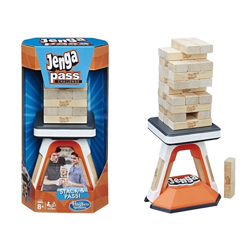 Gra Jenga Pass Challenge to nowa odsłona popularnej, zabawnej gry - czy uda Ci się równie łatwo nie doprowadzić do zniszczenia wieży gdy tym razem nie stoi na twardym, nieruchomym podłożu? Przekonaj się razem z przyjaciółmi!
