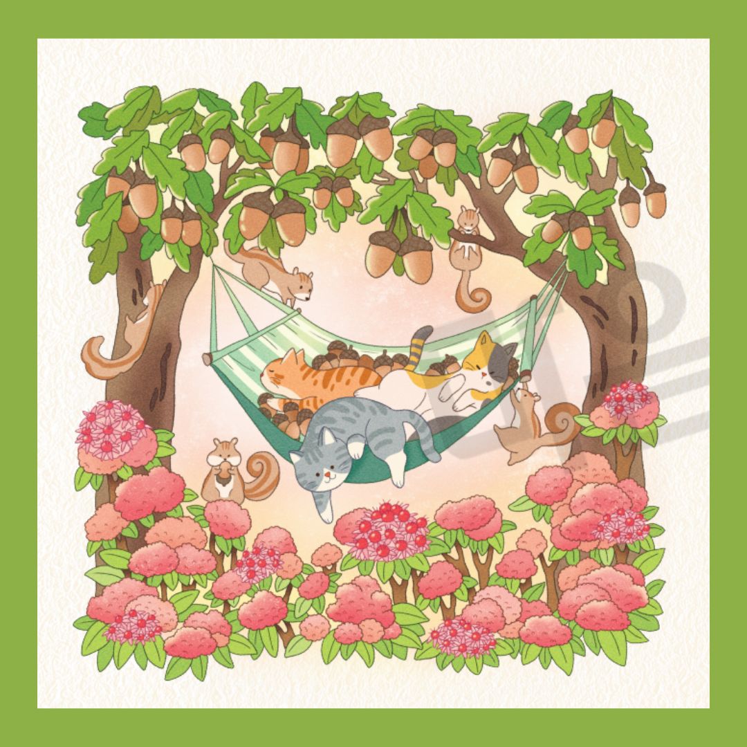 Jesienny piknik kotów. Kolorowanka z serii Kwiaty Korei