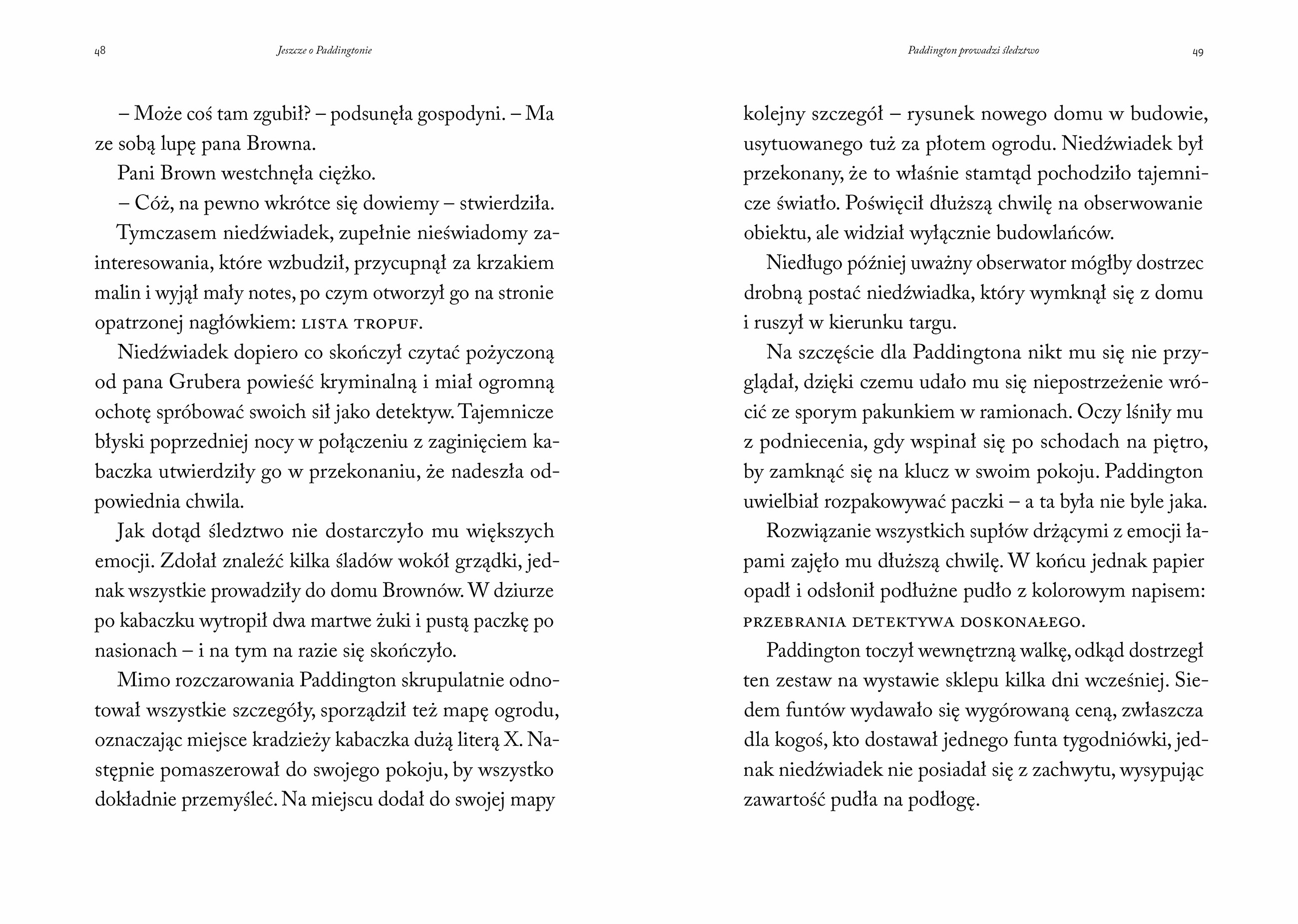 Najniższa cena z ostatnich 30 dni: 25,51 zł Opis produktuZasady bezpieczeństwaPaddington, elegancki niedźwiadek w kapeluszu, przybysz z dalekiego Peru, już wie, że kanapka z marmoladą najlepiej smakuje we własnym domu. Zwłaszcza gdy przygotuje ją pani Bird. Dla rodziny Brownów miś byłby w stanie zrobić wszystko! Więc gdy ginie ważna rzecz pana Henry'ego, Paddington rusza z pomocą. Czy w sercu niedźwiadka jest dość odwagi, by w ciemną noc przeprowadzić śledztwo w poszukiwaniu złodziejaszka? x