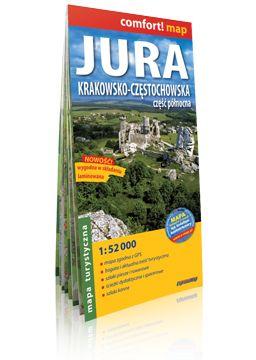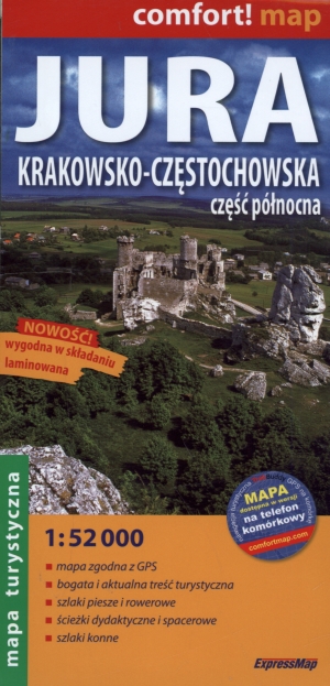Jura Krakowsko-Częstochowska - część północna to:- Mapa laminowana- Skala 1 : 52 000 - Szlaki rowerowe- Szlaki piesze- Ścieżki dydaktyczne. Mapy laminowane są: - Trwałe, nie przecierają się na zgięciach, gwarantują wielokrotne rozkładanie i składanie, są odporne na wilgoć i zabrudzenia - Wygodne, specjalne zawiasy sprawiają, że składanie mapy jest proste w każdych, nawet niesprzyjających warunkach (w samochodzie, w deszczu, itp.) - Praktyczne, pozwalają na wielokrotne nanoszenie i ścieranie własnych notatek, np. zaznaczanie tras lub obiektów co ułatwia dojazd i odnalezienie żądanego celu - Czytelne i wyraźne, laminowanie gwarantuje zachowanie pierwotnego wyglądu mapy przez cały czas użytkowania, druk mapy nie niszczy się i nie blaknie.