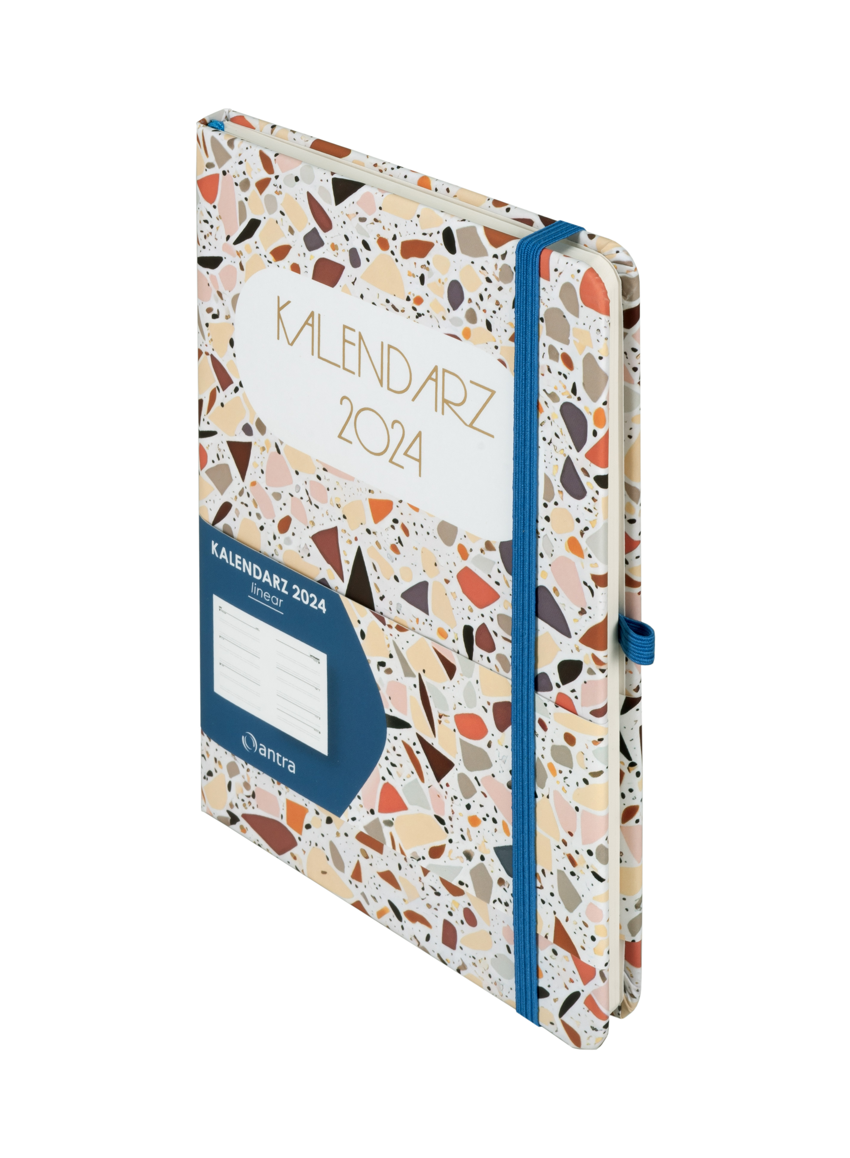 Opis produktuZasady bezpieczeństwaKolekcja: Linear Format: A5 Wymiary okładki: 210x144 mm Układ: tydzień na stronie Ilość stron: 144 Oprawa: twarda Materiał: papier Gramatura papieru: 80g Kolor papieru: chamoise Dodatki: plan roku 2024, ważne wydarzenia, skorowidz adresowy, notatki Pionowa gumka zamykająca: złota Wstążka: złota Gumka na długopis: tak, złota Zaokrąglone rogi: tak Wyklejka: chamoise Koperta: tak x