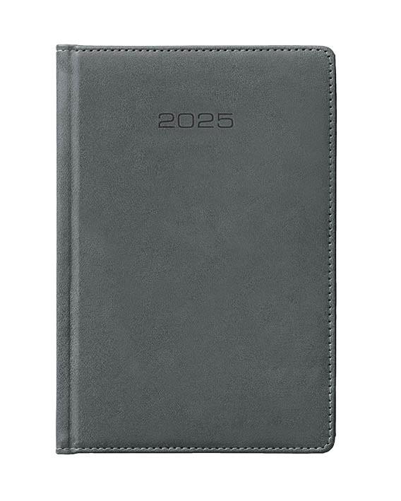 Kalendarz posiada przejrzysty układ kalendarium, rozbudowaną część informacyjną oraz kolorowe mapy Polski i Europy. Bloki szyte nićmi, dwa kolory druku (szary-burgund). Przeszywana, skóropodobna okleina na tekturze z gąbką umożliwia wykonanie nadruków, głębokiego - termoprzebarwialnego tłoczenia i personalizacji laserowej kalendarza. Posiada perforację narożników i wstążkę w kolorze zharmonizowanym z kolorem okleiny.