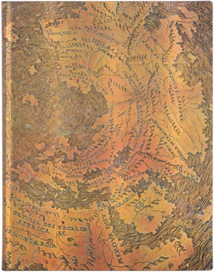 Opis produktuZasady bezpieczeństwaKalendarz na rok 2022, 12-miesięczny ULTRA FLEXI z kolekcji ekskluzywnej marki Paperblanks. Okładka inspirowana jest unikatowym, pochodzącym z około 1510 roku globusem Hunt-Lenox. W środku znajdziemy miejsce na codzienne wpisy, notatki, planery, dwie satynowe wstążki, mini kalendarze, międzynarodowe numery kierunkowe, miejsce do wpisania swoich ważnych numerów, oznaczone wybrane święta międzynarodowe i wiele innych przydatnych informacji. Format Ultra typu vertical - rozplanowany cały tydzień pionowo na 2 stronach, z podziałką godzinową. Opisy są w języku angielskim. Kalendarz posiada 176 zszywanych stron, format 180x230mm, gramatura 100 gsm. Oprawa elastyczna. Na końcu po wewnętrznej stronie okładki jest koperta na luźne notatki lub wizytówki. x