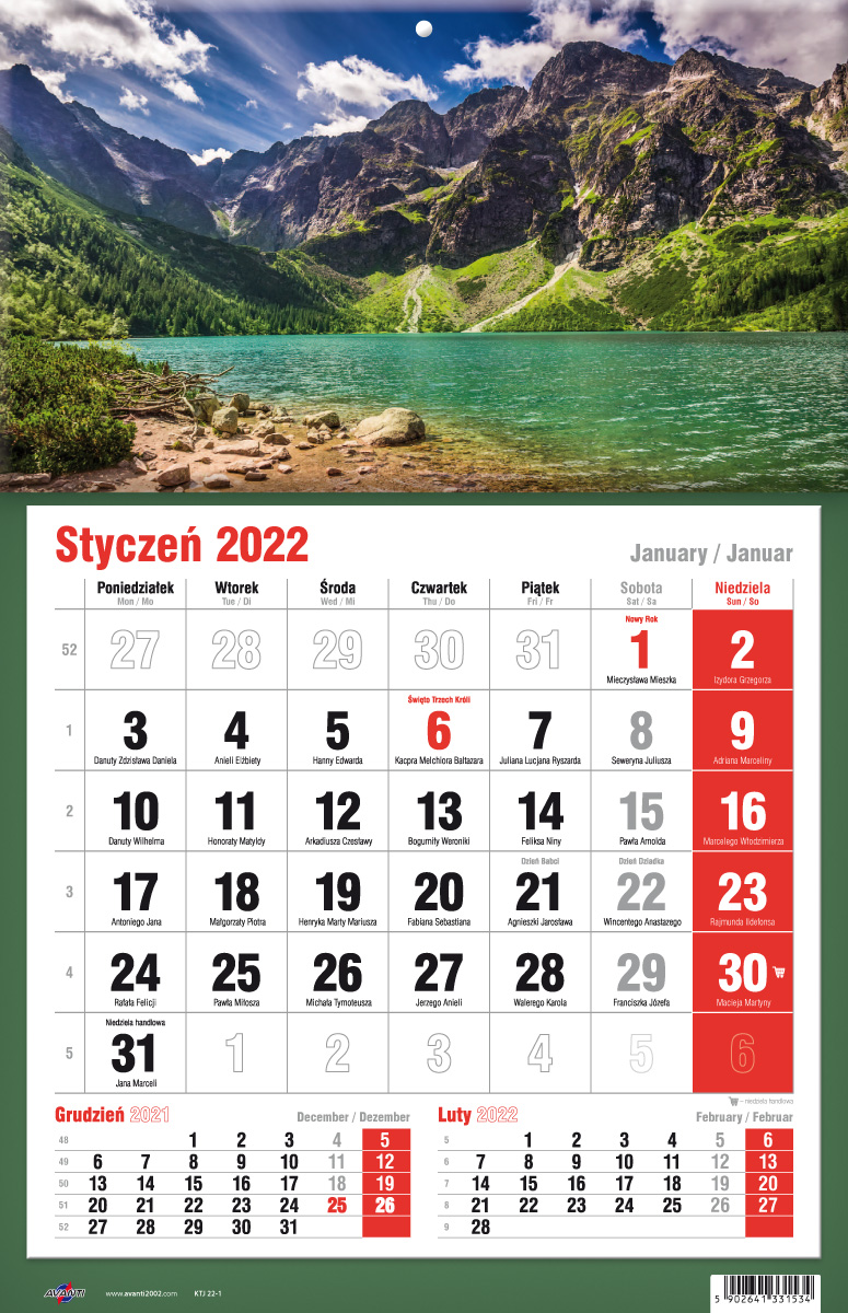 Kalendarz 2022 KTJ Jednodzielny MIX AVANTI