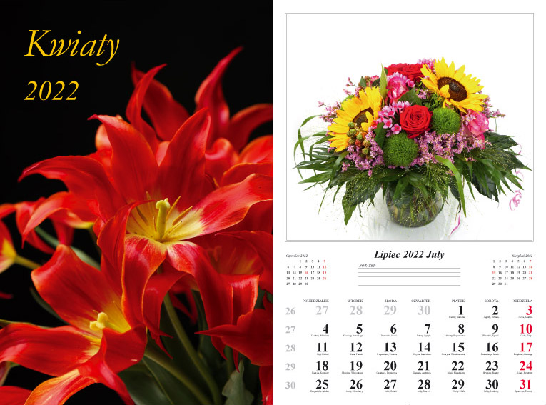 Kalendarz 2022 Ścienny dwustronny Kwiaty RADWAN