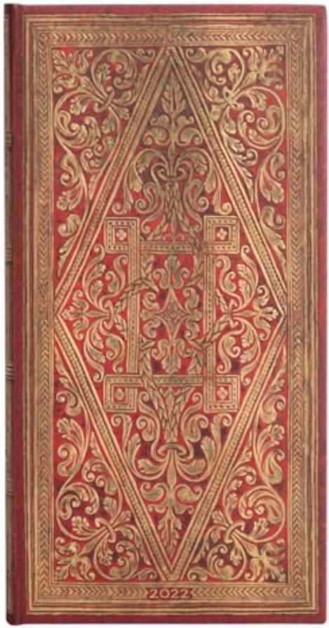 Opis produktuZasady bezpieczeństwaKalendarz na rok 2022, 12-miesięczny SLIM z kolekcji ekskluzywnej marki Paperblanks. Wzór na okładce pierwotnie wykonany był z drewna bukowego i ciemnobrązowej skóry i użyty był do oprawy Podręcznika Wieczerzy Pańskiej Jeremiaha Schweiglinuma. Został wyprodukowany w prowadzonej przez Katharine Gerlachin drukarni Berg & Neuber w Norymberdze w Niemczech w 1568 roku. W środku znajdziemy miejsce na codzienne wpisy, notatki, planery, dwie satynowe wstążki, mini kalendarze, międzynarodowe numery kierunkowe, miejsce do wpisania swoich ważnych numerów, oznaczone wybrane święta międzynarodowe i wiele innych przydatnych informacji. Format Slim typu Horizontal - rozplanowany cały tydzień na 2 stronach. Opisy są w języku angielskim. Kalendarz posiada 160 zszywanych stron, format 95x180mm, gramatura 100 gsm. Oprawa twarda. Na końcu po wewnętrznej stronie okładki jest koperta na luźne notatki lub wizytówki. Zamknięcie na gumkę. x