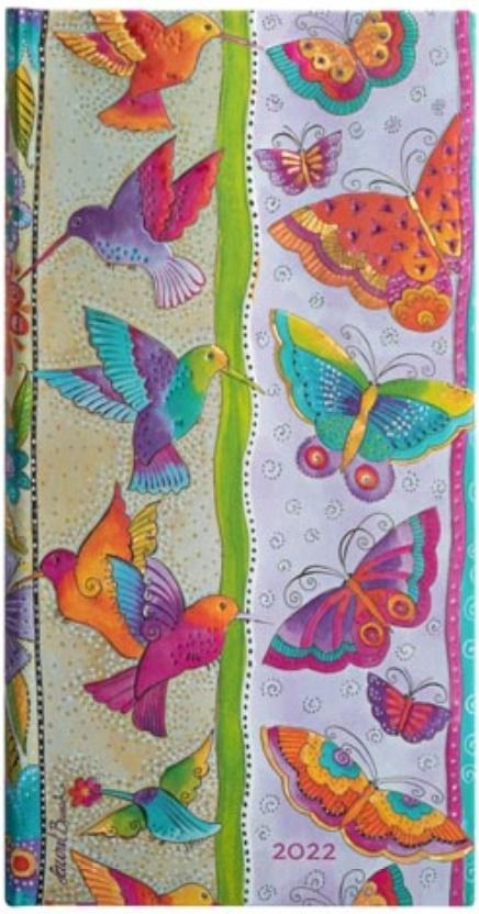 Opis produktuZasady bezpieczeństwaKalendarz na rok 2022, 12-miesięczny SLIM z kolekcji ekskluzywnej marki Paperblanks. Wzór na okładce odtwarza obraz Laurel Burch, która była artystką-samoukiem i hipiską. Latające motyle i kolibry były jednym z jej ulubionych motywów. W środku znajdziemy miejsce na codzienne wpisy, notatki, planery, dwie satynowe wstążki, mini kalendarze, międzynarodowe numery kierunkowe, miejsce do wpisania swoich ważnych numerów, oznaczone wybrane święta międzynarodowe i wiele innych przydatnych informacji. Format Slim typu Horizontal - rozplanowany cały tydzień na 2 stronach. Opisy są w języku angielskim. Kalendarz posiada 160 zszywanych stron, format 95x180mm, gramatura 100 gsm. Oprawa twarda. Na końcu po wewnętrznej stronie okładki jest koperta na luźne notatki lub wizytówki. Zamknięcie na gumkę. x