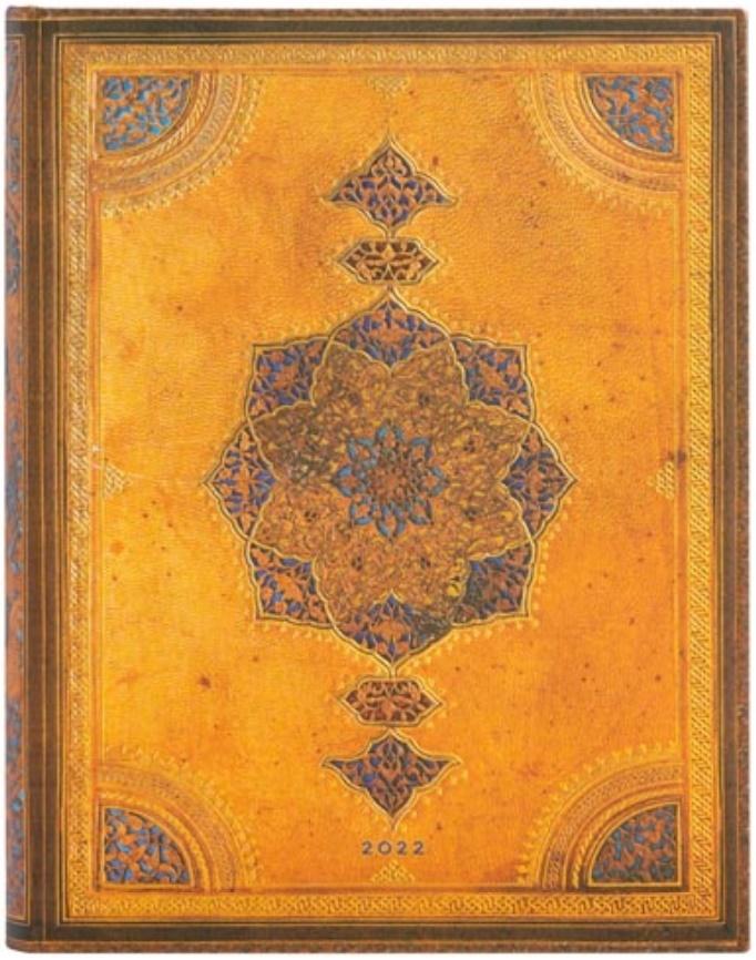 Opis produktuZasady bezpieczeństwaKalendarz na rok 2022, 12-miesięczny ULTRA z kolekcji ekskluzywnej marki Paperblanks. Okładka z pięknymi, filigranowymi, symetrycznymi wzorami charakterystycznymi dla dynastii Safawidów. W środku znajdziemy miejsce na codzienne wpisy, notatki, planery, dwie satynowe wstążki, mini kalendarze, międzynarodowe numery kierunkowe, miejsce do wpisania swoich ważnych numerów, oznaczone wybrane święta międzynarodowe i wiele innych przydatnych informacji. Każdy dzień jest na osobnej stronie, soboty i niedziele są razem. Opisy są w języku angielskim. Kalendarz posiada 368 zszywanych stron, format 180x230mm, gramatura 80 gsm. Oprawa twarda. Na końcu po wewnętrznej stronie okładki jest koperta na luźne notatki lub wizytówki. Zamknięcie na gumkę. x