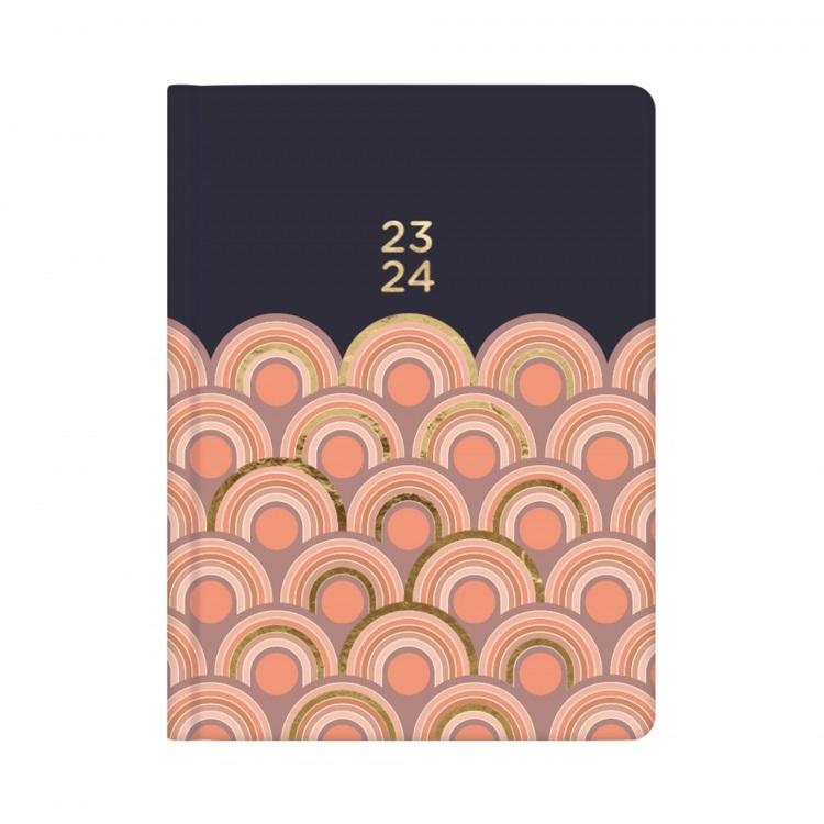 kalendarz książkowy 2023/2024, 18 miesięcy: lipiec 2023 - grudzień 2024, format: B6, wymiary: 12,5 x 17 x 1,5 cm, układ: tygodniowy, wewnątrz: wstążka, plan roku 2022, notatnik, adresownik, linijka, kalendarium dodatkowe na 2022-2023, gramatura: 120 g/m2, oprawa: twarda, gąbkowana