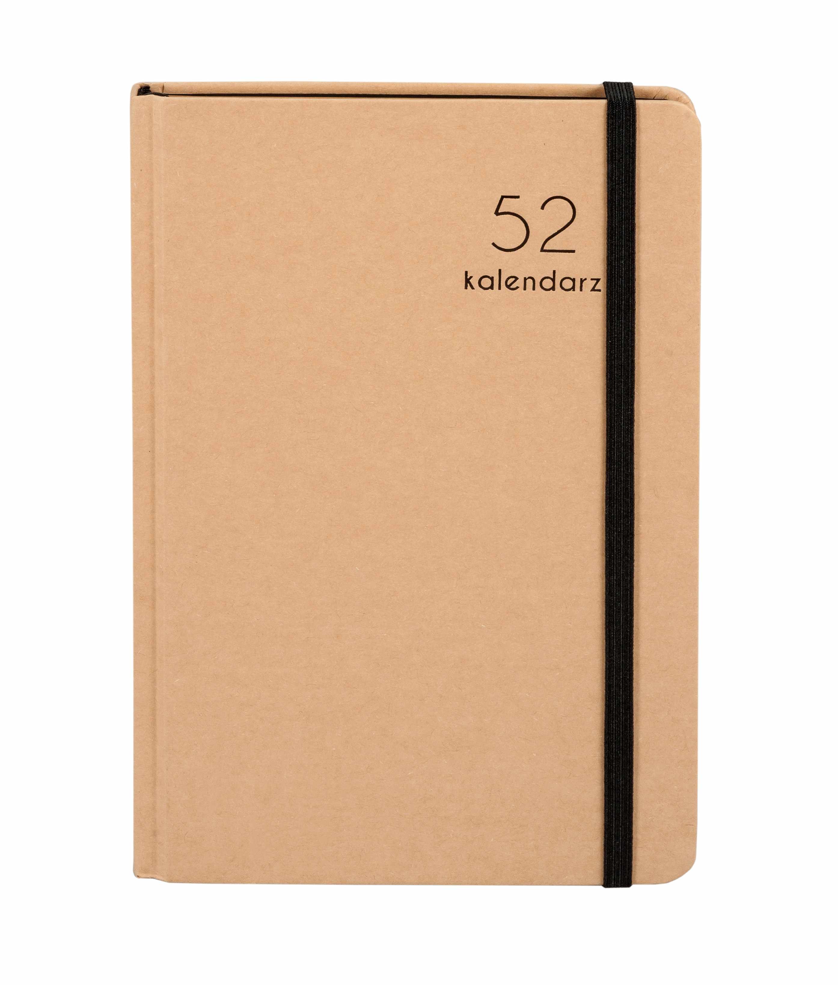 Opis produktuZasady bezpieczeństwaNiezwykły, minimalistyczny kalendarz z maksymalnie uproszczonym wnętrzem. Brązowe, naturalne kartki bez linii i kratek pozwalają na jeszcze większą dowolność w notatkach i zapiskach. Może być wykorzystywany jako kalendarz, bullet journal czy nawet pamiętnik. format A5, oprawa: twarda, materiał: papier kraftowy, papier: 80g, kolor papieru: ecru, barwione brzegi, wyklejka z ozdobnego papieru ecru, wstążka w kolorze czarnym, dodatkowe strony: skrócony kalendarz 2022-2024, plan roku 2023, ważne wydarzenia, notatnik oraz skorowidz adresowy, 352 strony, 141x207 mm x