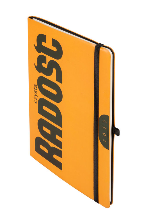 Opis produktuZasady bezpieczeństwaformat: A5, wymiary okładki: 210x145 mm, układ: tydzień do wglądu, Ilość stron: 144, oprawa: miękka, materiał: skóra ekologiczna z nadrukiem, gramatura papieru: 80g, kolor papieru: off white, dodatki: plan roku 2023, ważne wydarzenia, skorowidz adresowy, notatki, pionowa gumka zamykająca: czarna, wstążka: czarna, gumka na długopis: czarna, zaokrąglone rogi: tak, wyklejka: czarna, koperta: tak, dostępne kolory: pomarańczowy