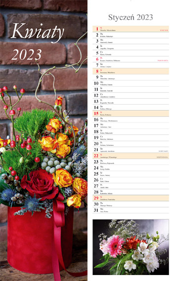 Kalendarz 2023 Ścienny pasek Kwiaty