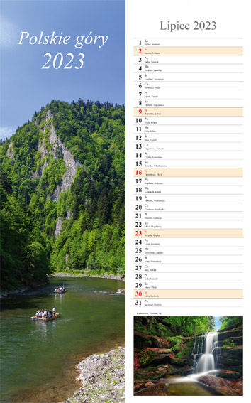 Kalendarz 2023 Ścienny pasek Polskie góry