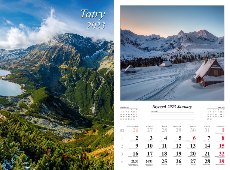 Kalendarz 2023 Ścienny wieloplanszowy Tatry