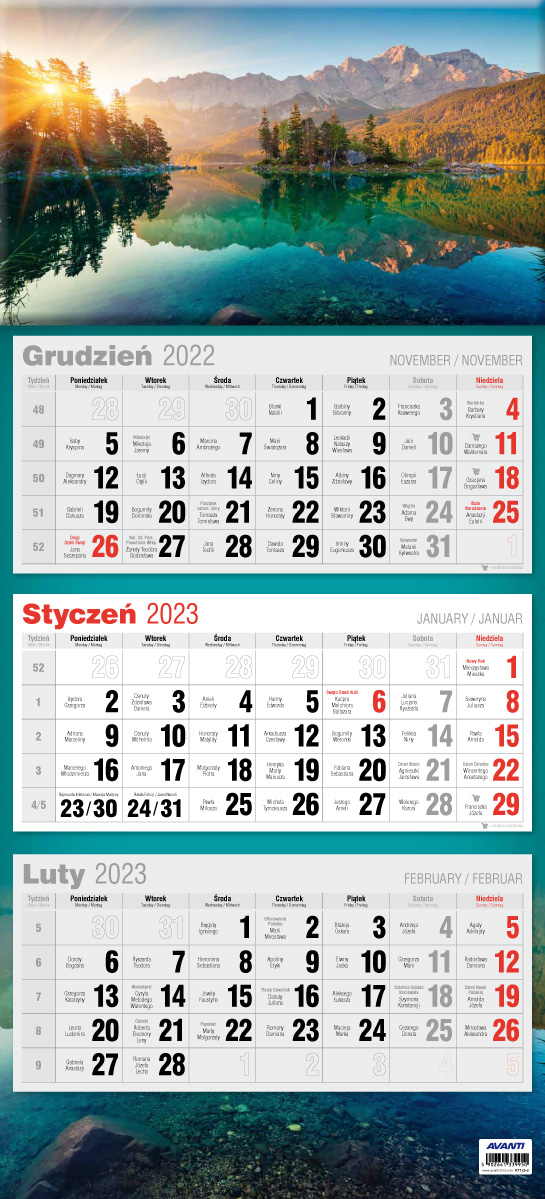 Kalendarz 2023 Trójdzielny płaski MIX AVANTI