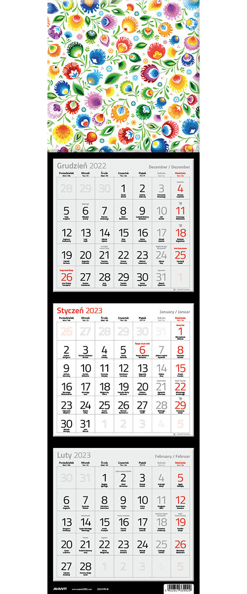 Kalendarz 2023 Trójdzielny z magnesem MIX AVANTI