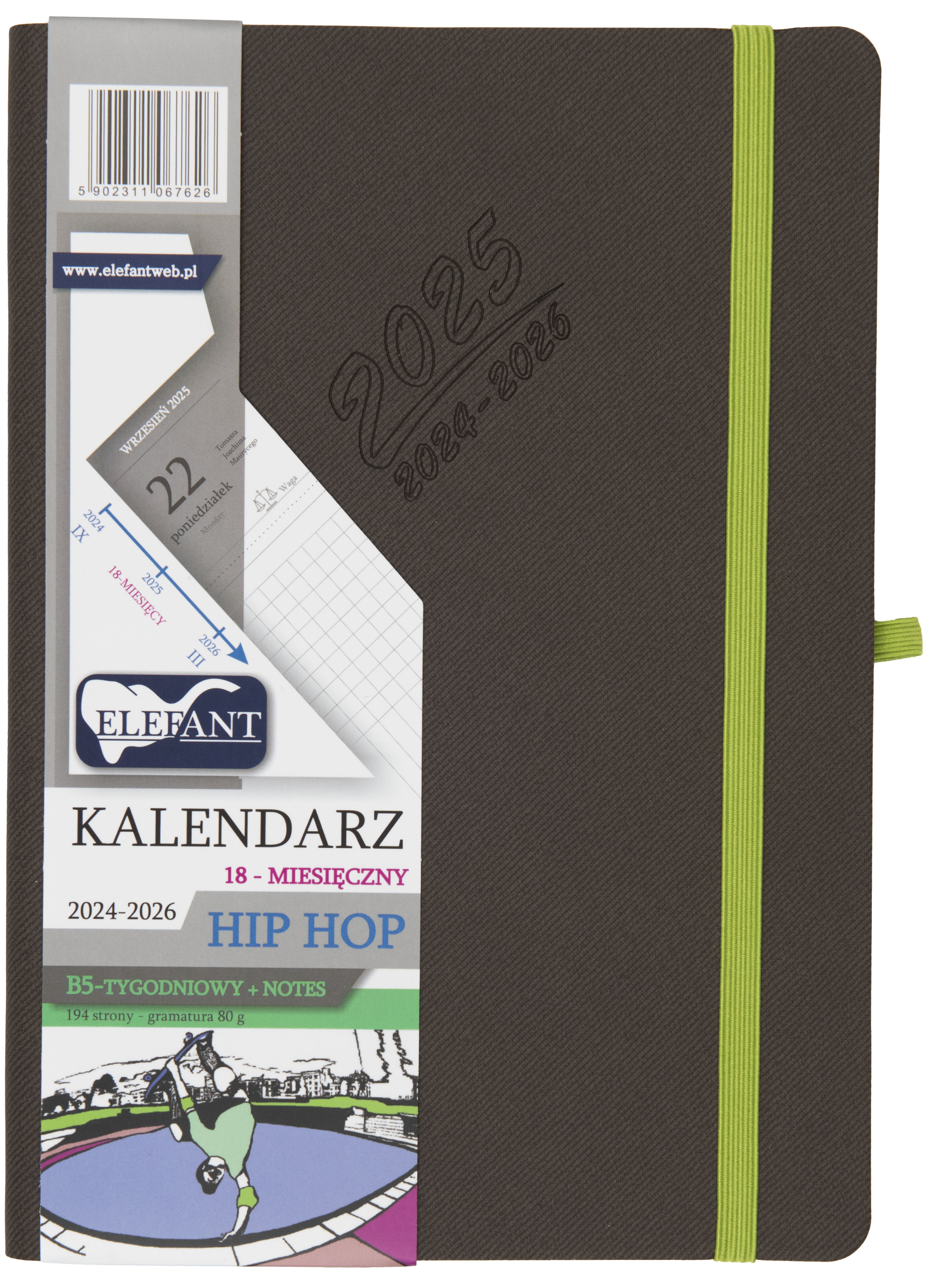 Kalendarz 2024/2026 B5 18M + notes Hip Hop szary