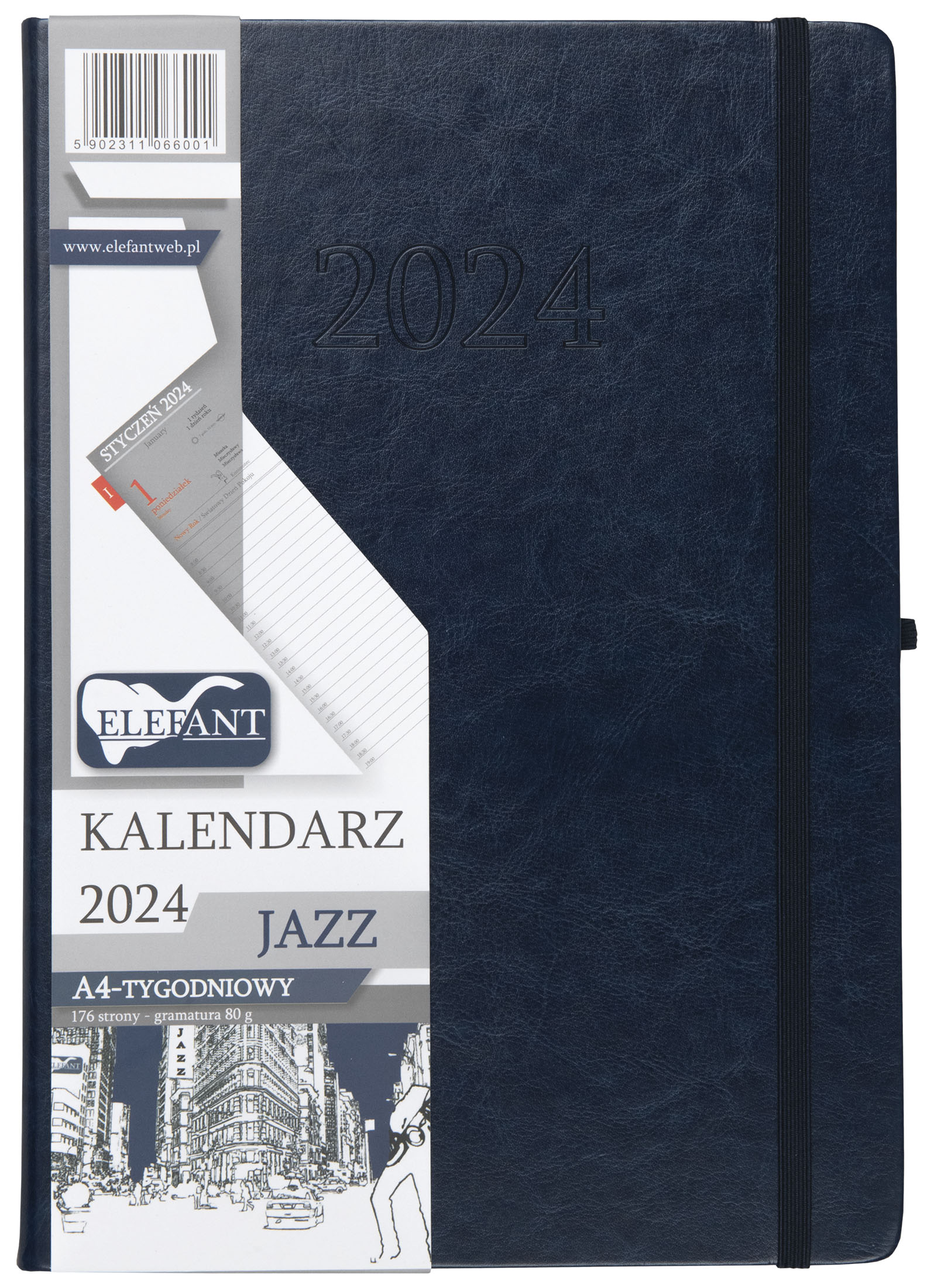 Kalendarz 2024 A4 tygodniowy Jazz granatowy