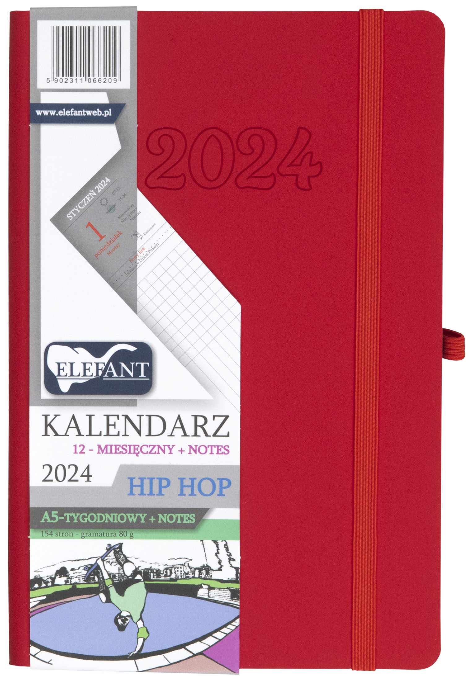 Kalendarz 2024 A5 12M + notes Hip hop czerwony