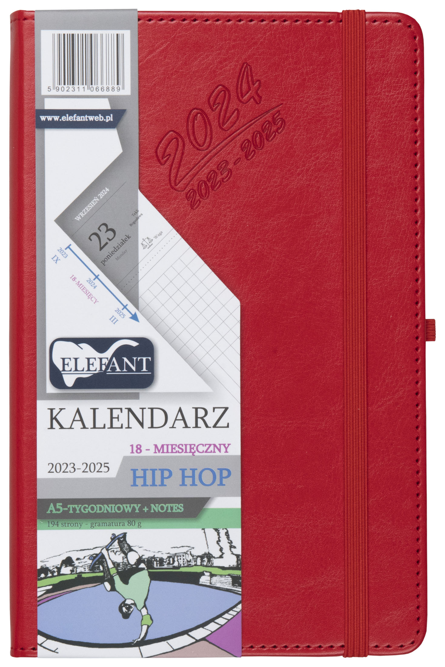 Kalendarz 2024 A5 18M + notes Hip hop czerwony