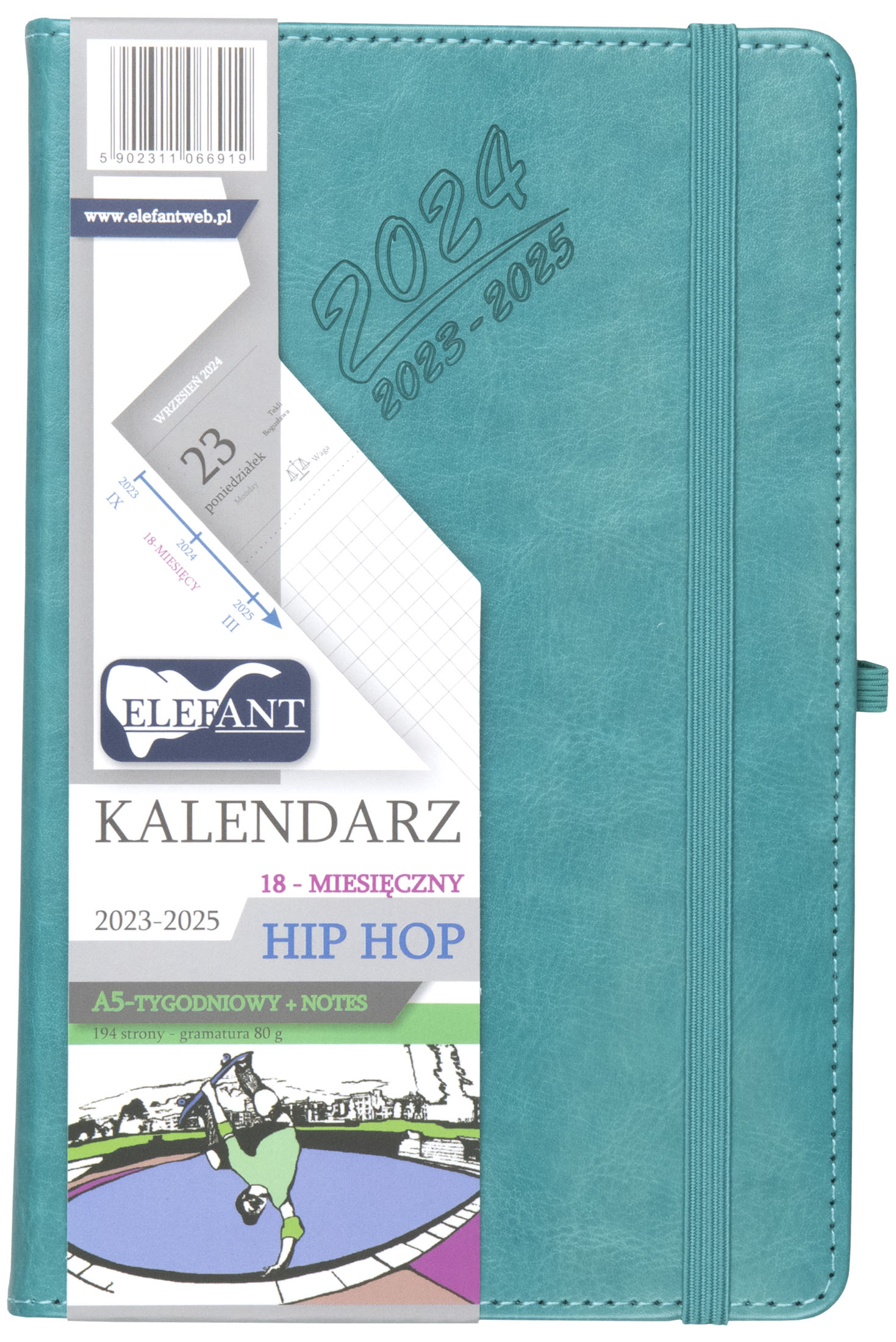 Kalendarz 2024 A5 18M + notes Hip hop turkusowy