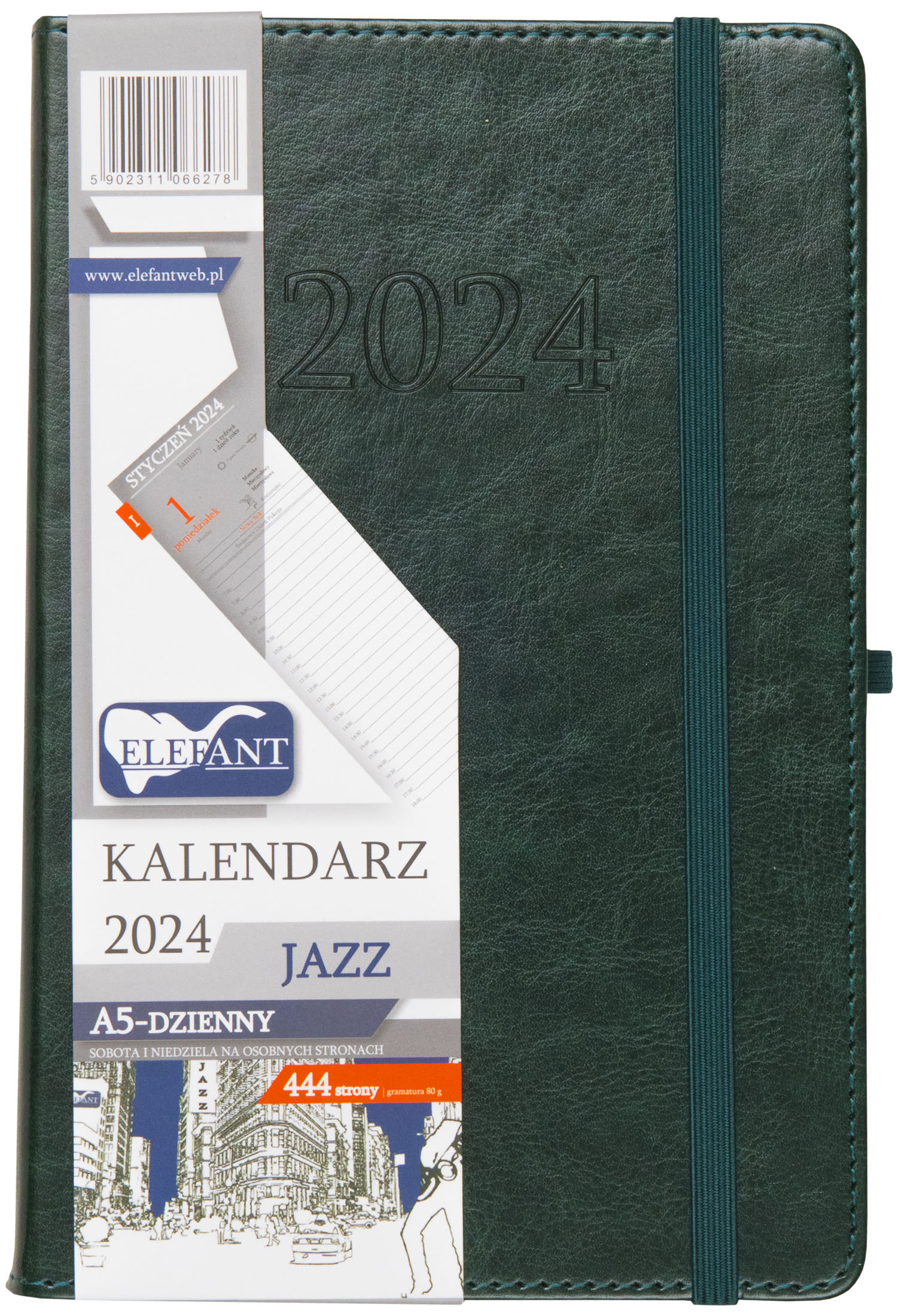 Kalendarz 2024 A5 dzienny Jazz zielony