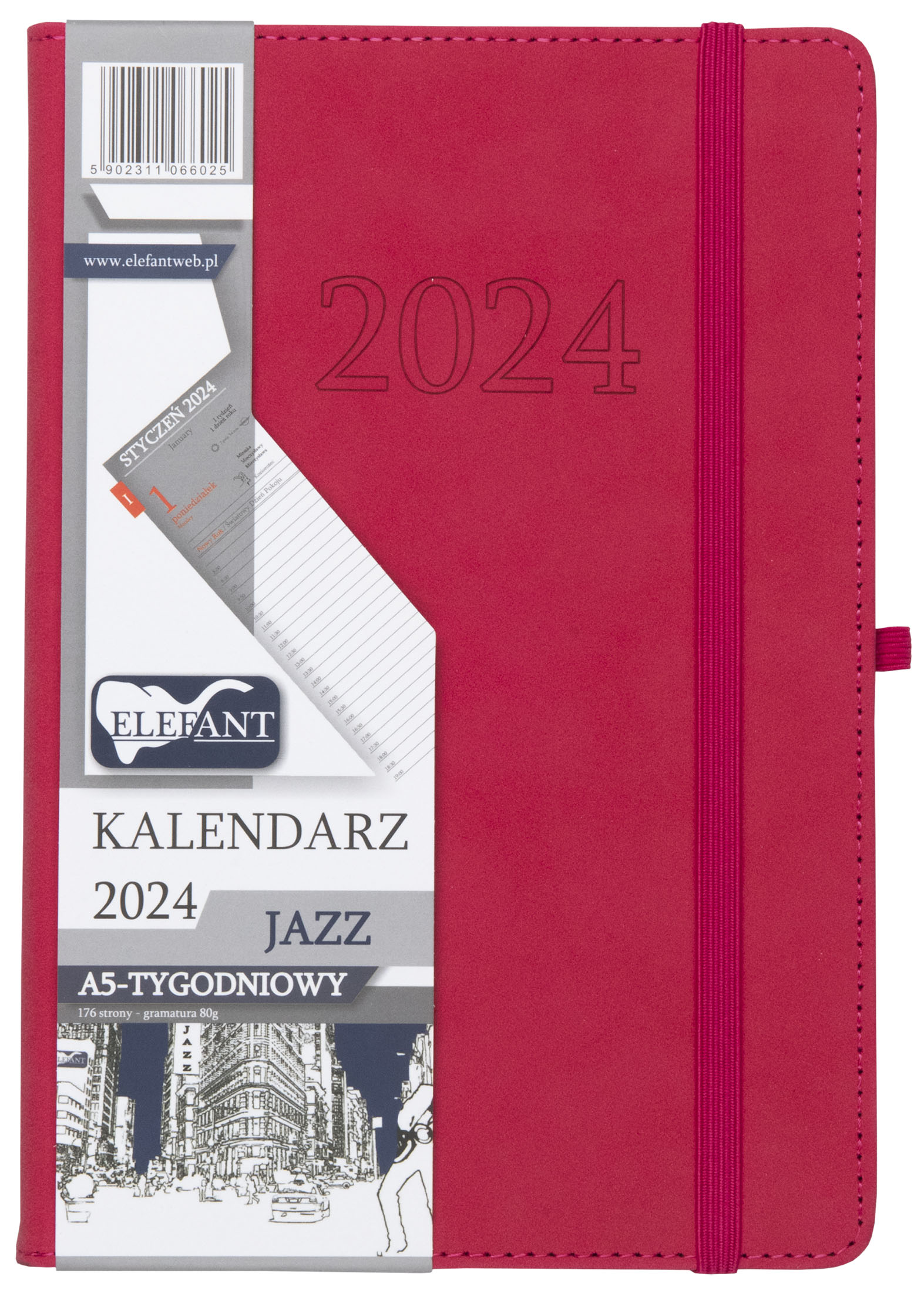 Kalendarz 2024 A5 tygodniowy Jazz rózowy