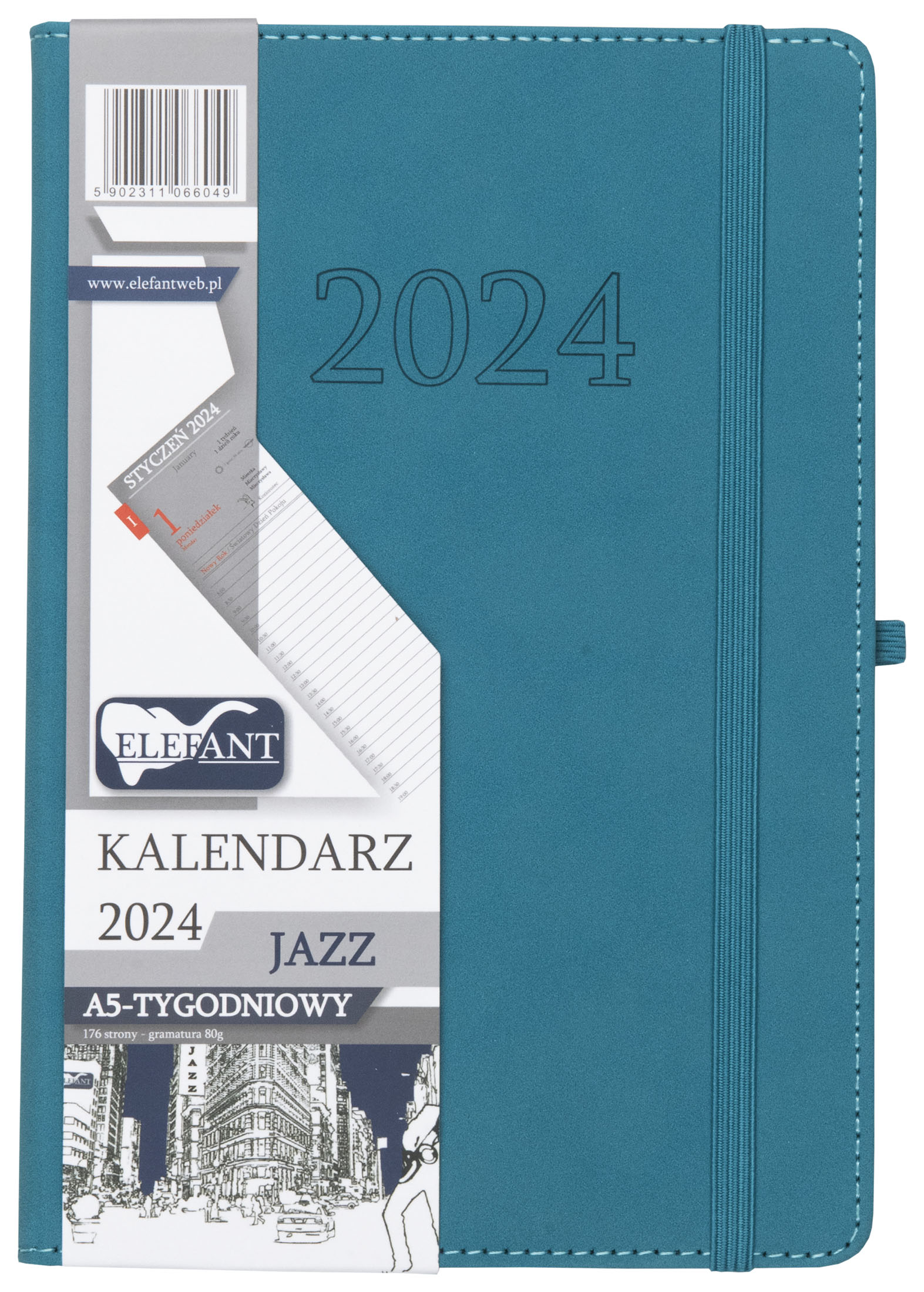 Kalendarz 2024 A5 tygodniowy Jazz turkusowy