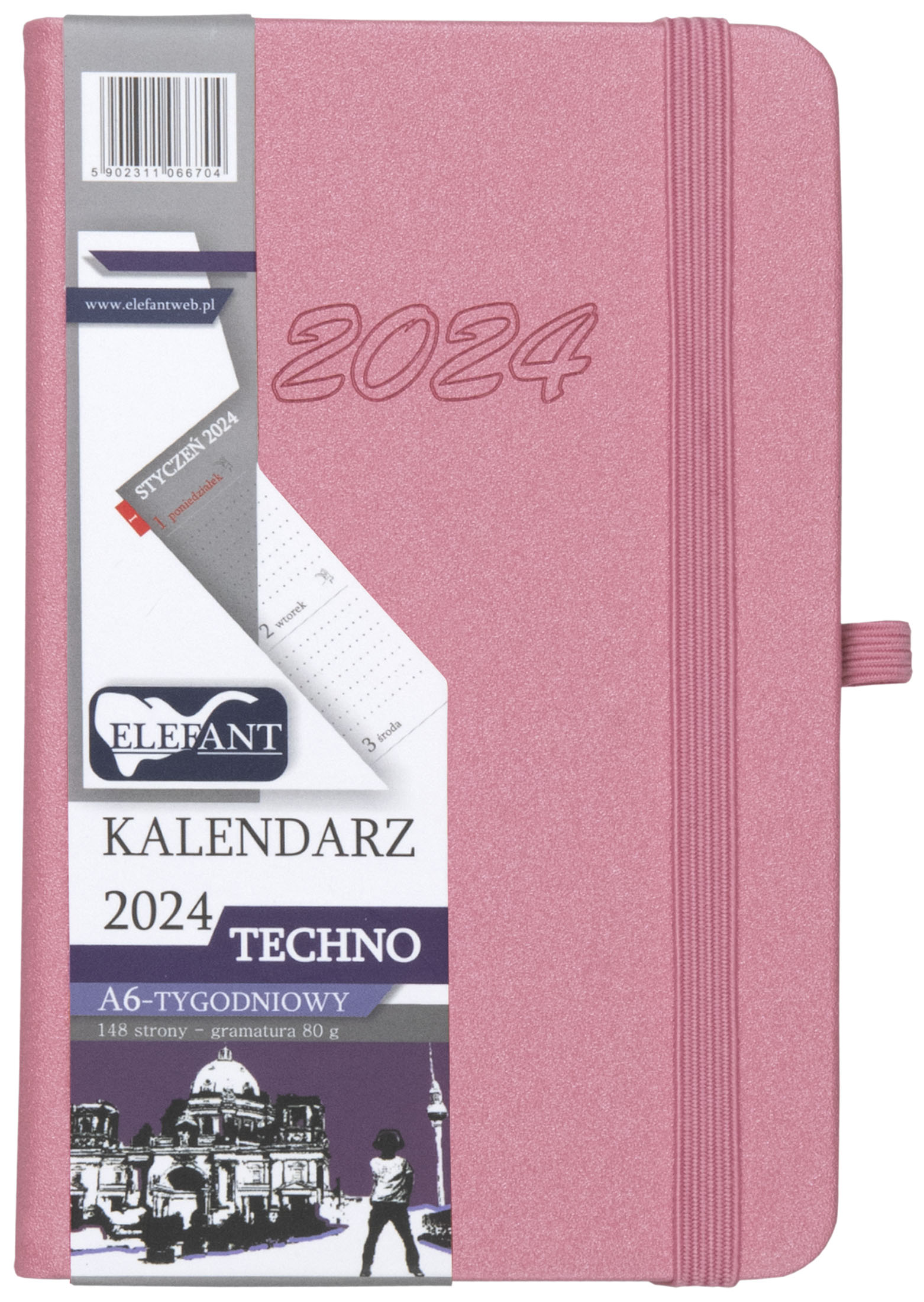 Kalendarz 2024 A6 tygodniowy Techno różowy