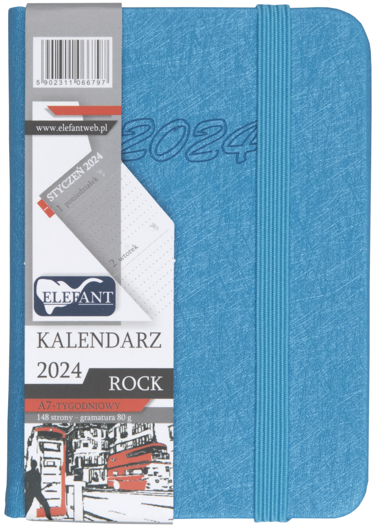 Kalendarz 2024 A7 tygodniowy Rock niebieski