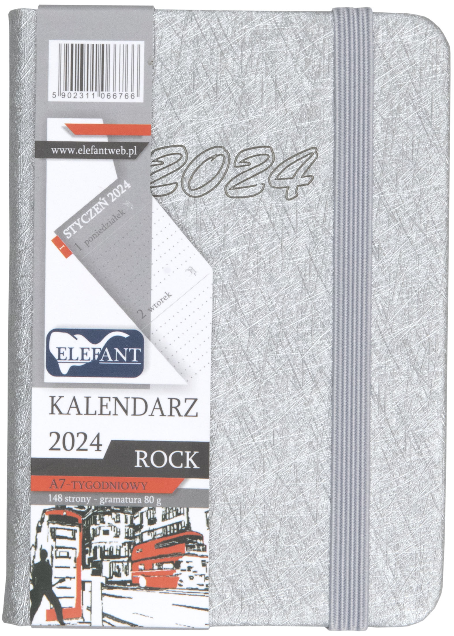 Kalendarz 2024 A7 tygodniowy Rock srebrny
