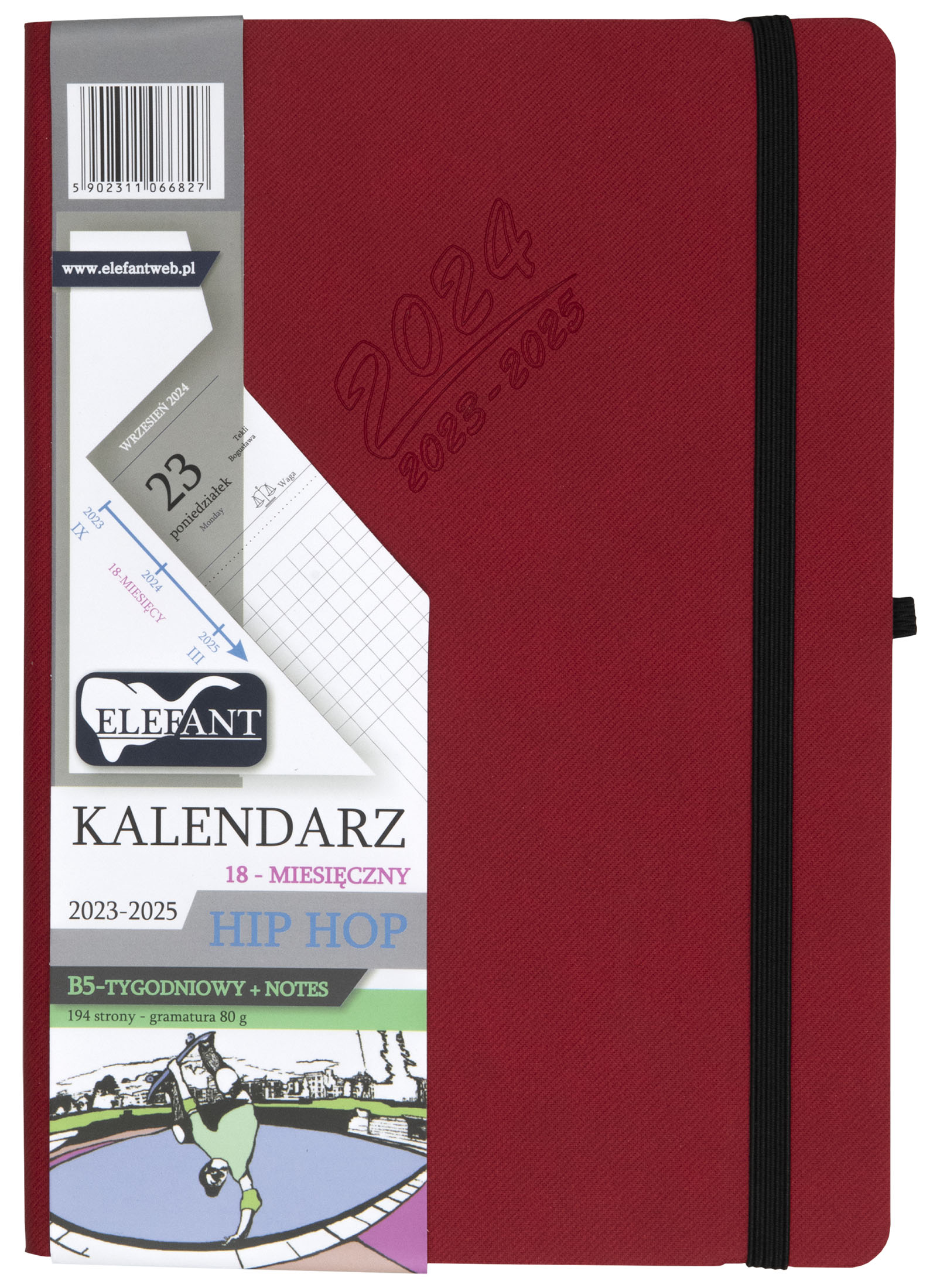 Kalendarz 2024 B5 18M + notes Hip hop czerwony