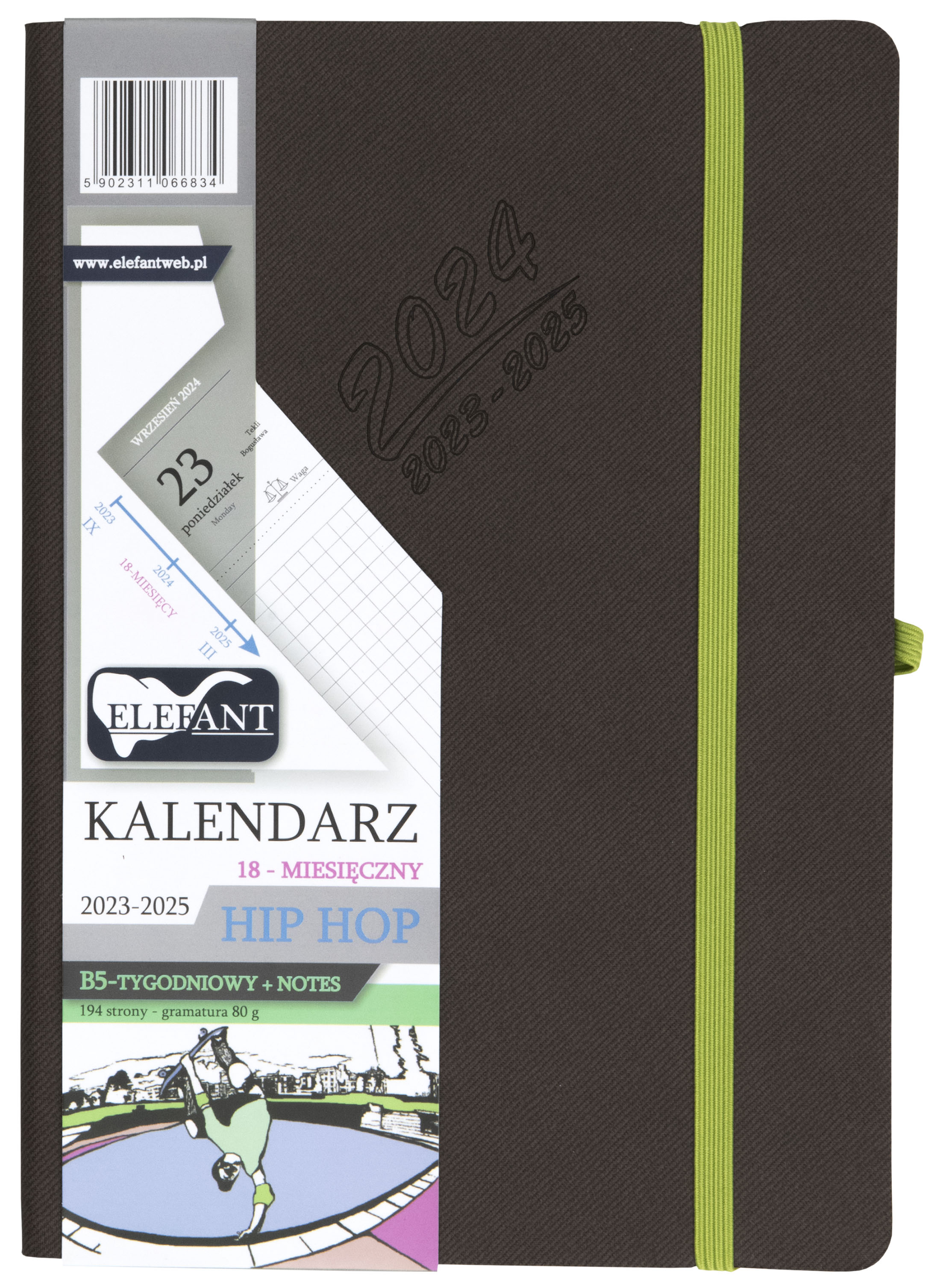 Kalendarz 2024 B5 18M + notes Hip hop szary