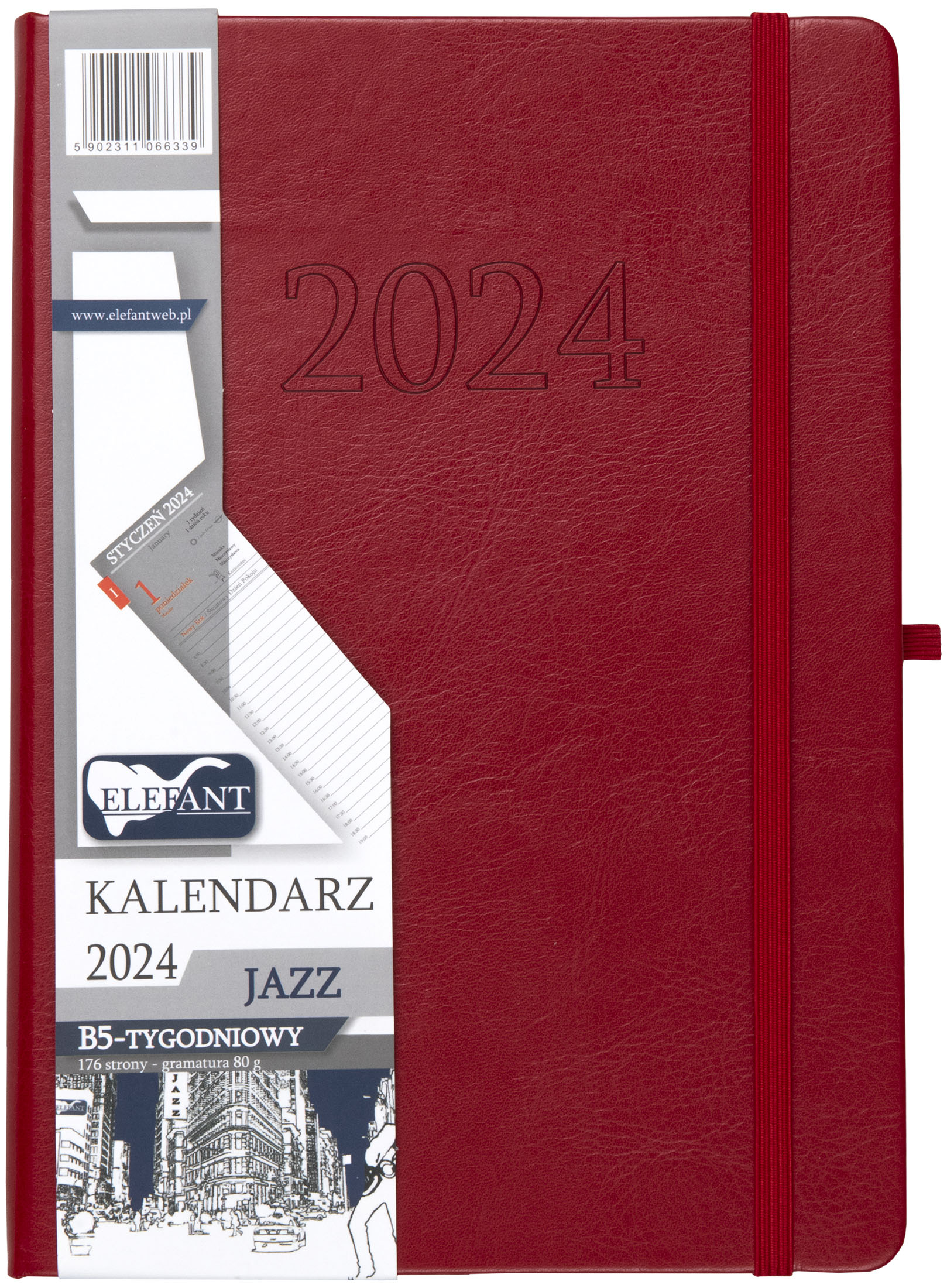 Kalendarz 2024 B5 tygodniowy Jazz czerwony
