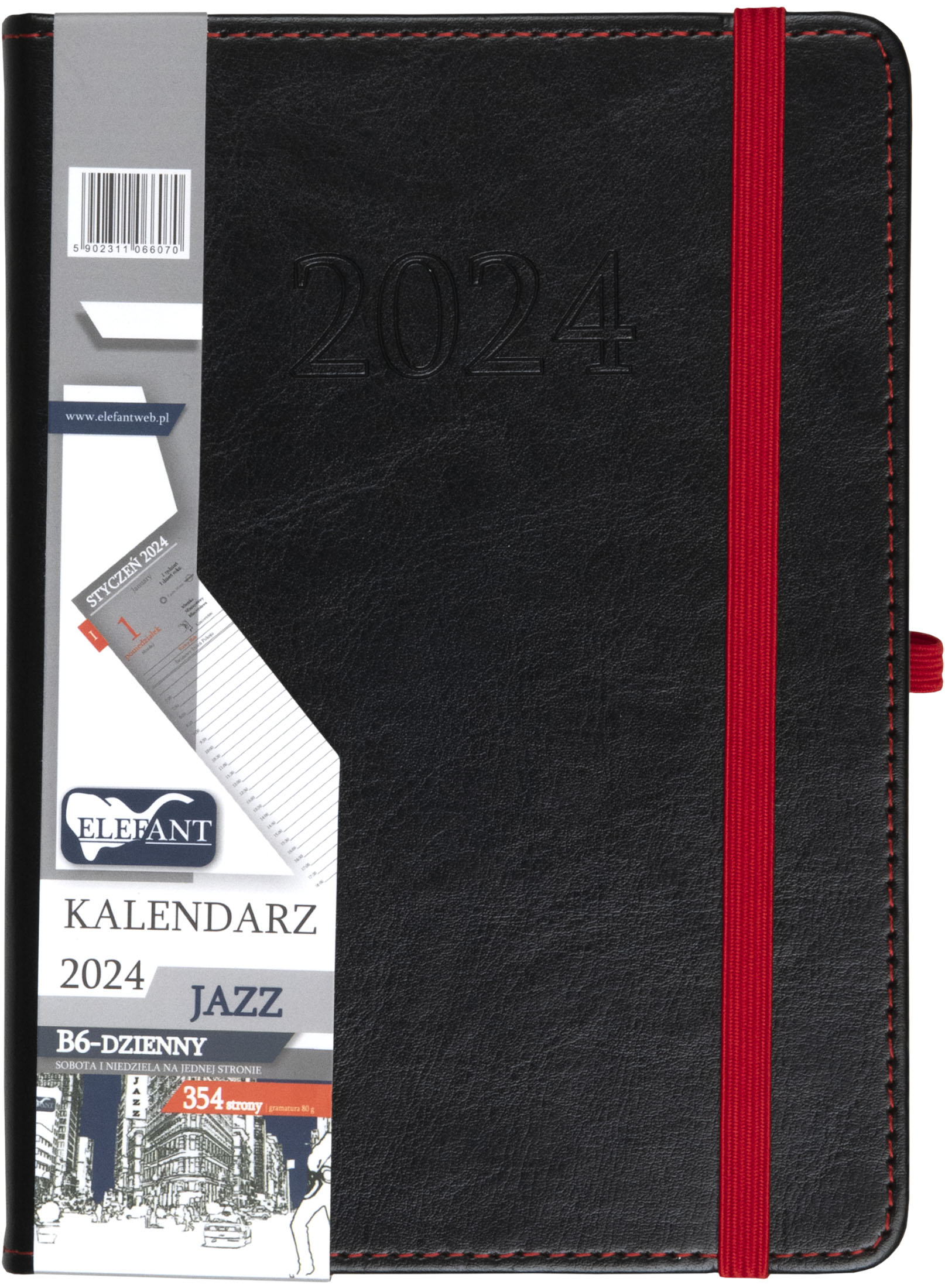 Opis produktuZasady bezpieczeństwaJazz: kalendarz książkowy 2024 format: B6 oprawa: twarda wykonana z wysokiej jakości materiału imitującego skórę oprawa przeszyta delikatną nicią w kolorze czerwonym zamykany na gumkę w kolorze czerwonym gumka na długopis w kolorze czerwonym zaokrąglone narożniki opraw i stron dwie tasiemki w kolorze czerwonym pierwsze strony wewnątrz wraz z kopertą na tylnej oprawie w kolorze czerwonym układ: dzienny (sobota i niedziela na jednej stronie) liczba stron: 354 stron gramatura papieru: 80 g/m2 papier w kolorze delikatnym chamois wewnątrz: plan roku i rozkład roku 2024, terminy ferii zimowych, święta oficjalne i zwyczajowe, podróże, informacje dla podróżnych, protokół powypadkowy w przypadku stłuczki, notes, skorowidz teleadresowy, kalendarium dodatkowe na 2023-2024-2025 rok wymiary: długość 176 mm, szerokość 125 mm, wysokość 26 mm oprawa przygotowana do personalizacji kalendarza np. logo firmy, imię i nazwisko itp.