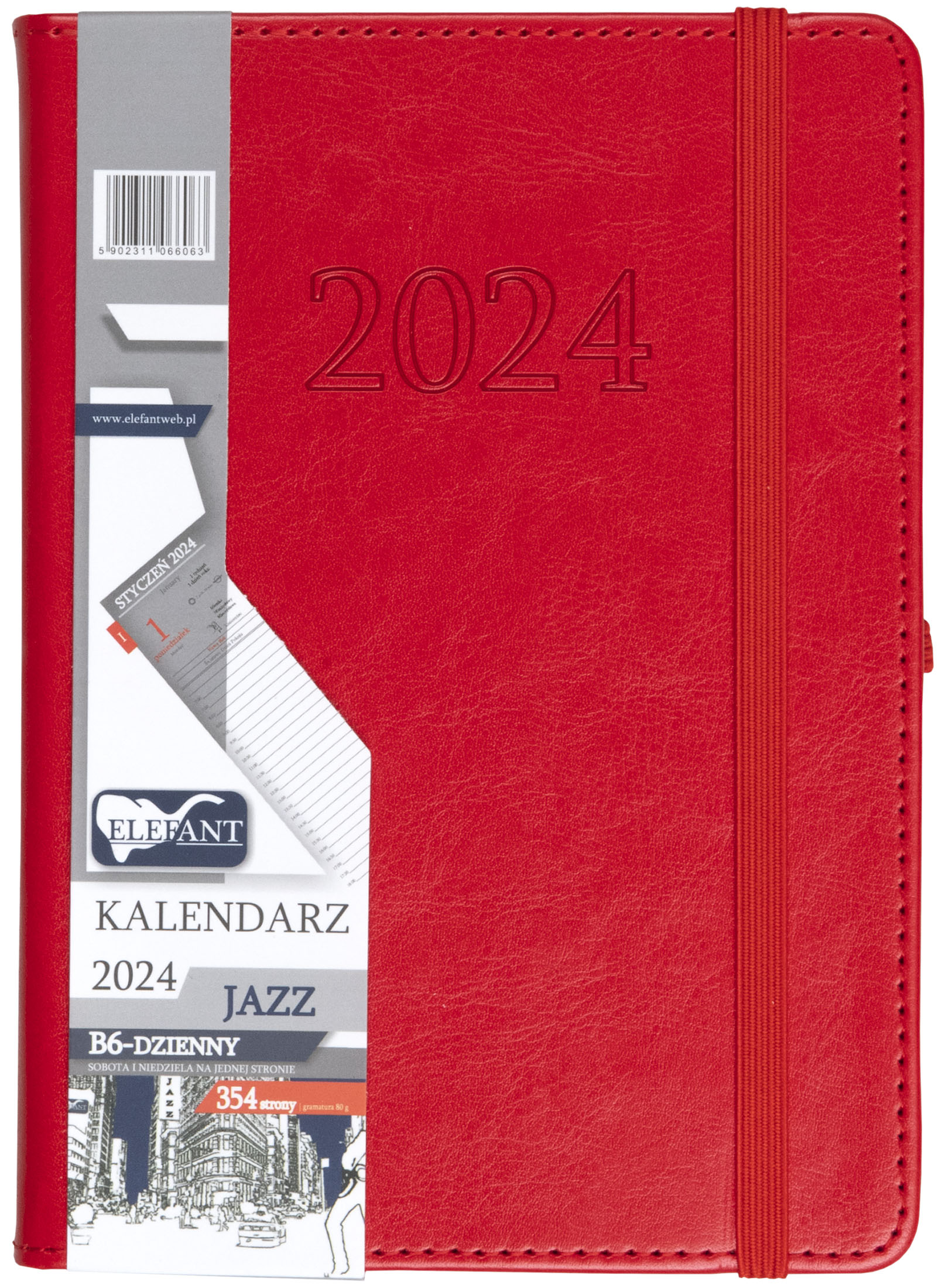 Kalendarz 2024 B6 dzienny Jazz czerwony