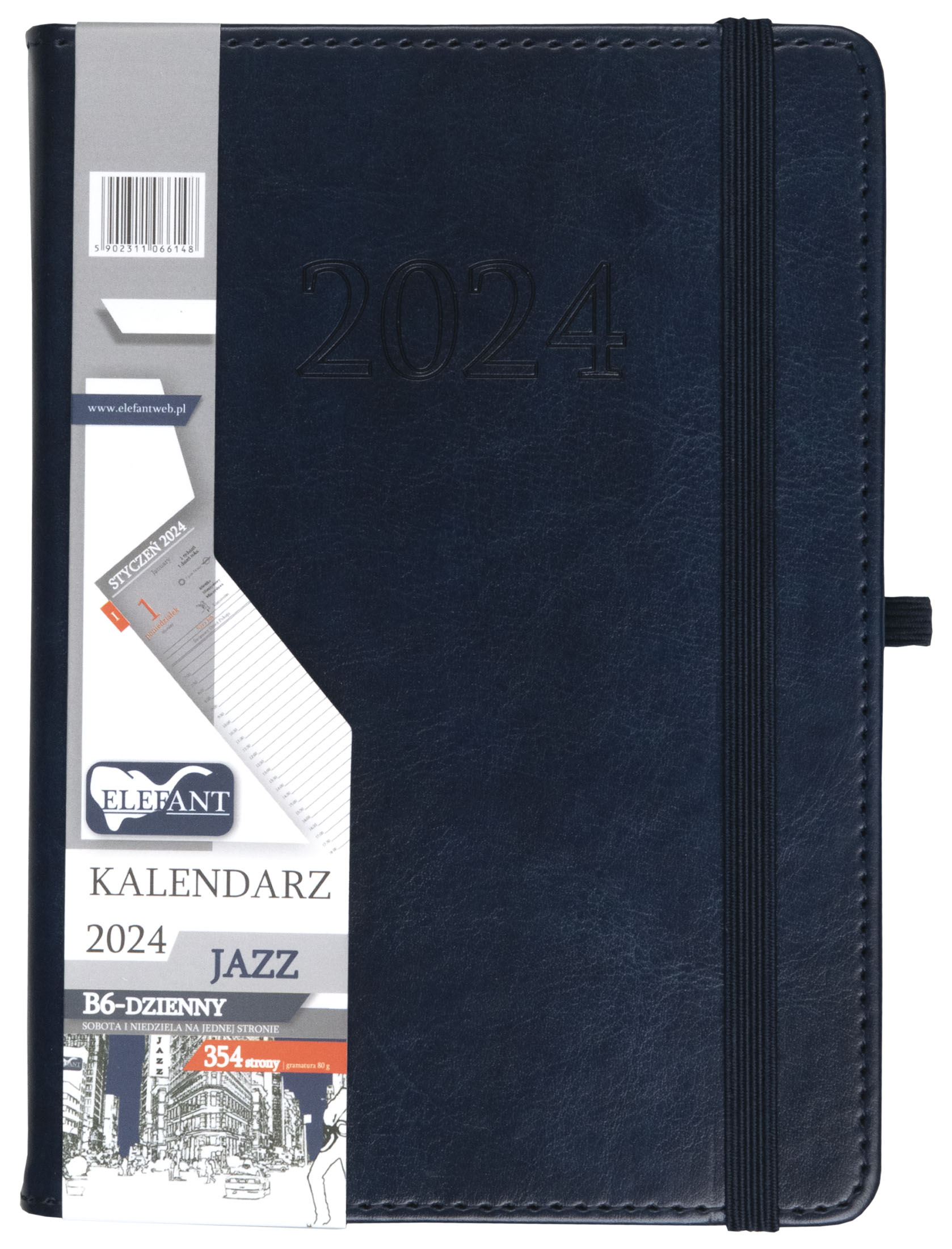 Kalendarz 2024 B6 dzienny Jazz granatowy