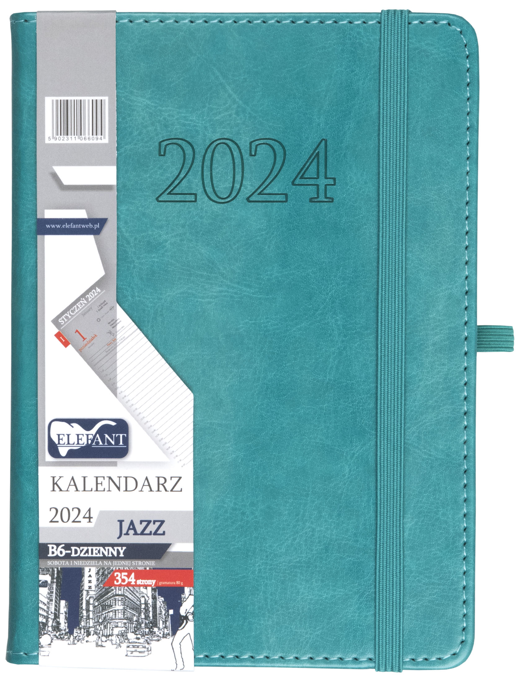 Kalendarz 2024 B6 dzienny Jazz turkusowy