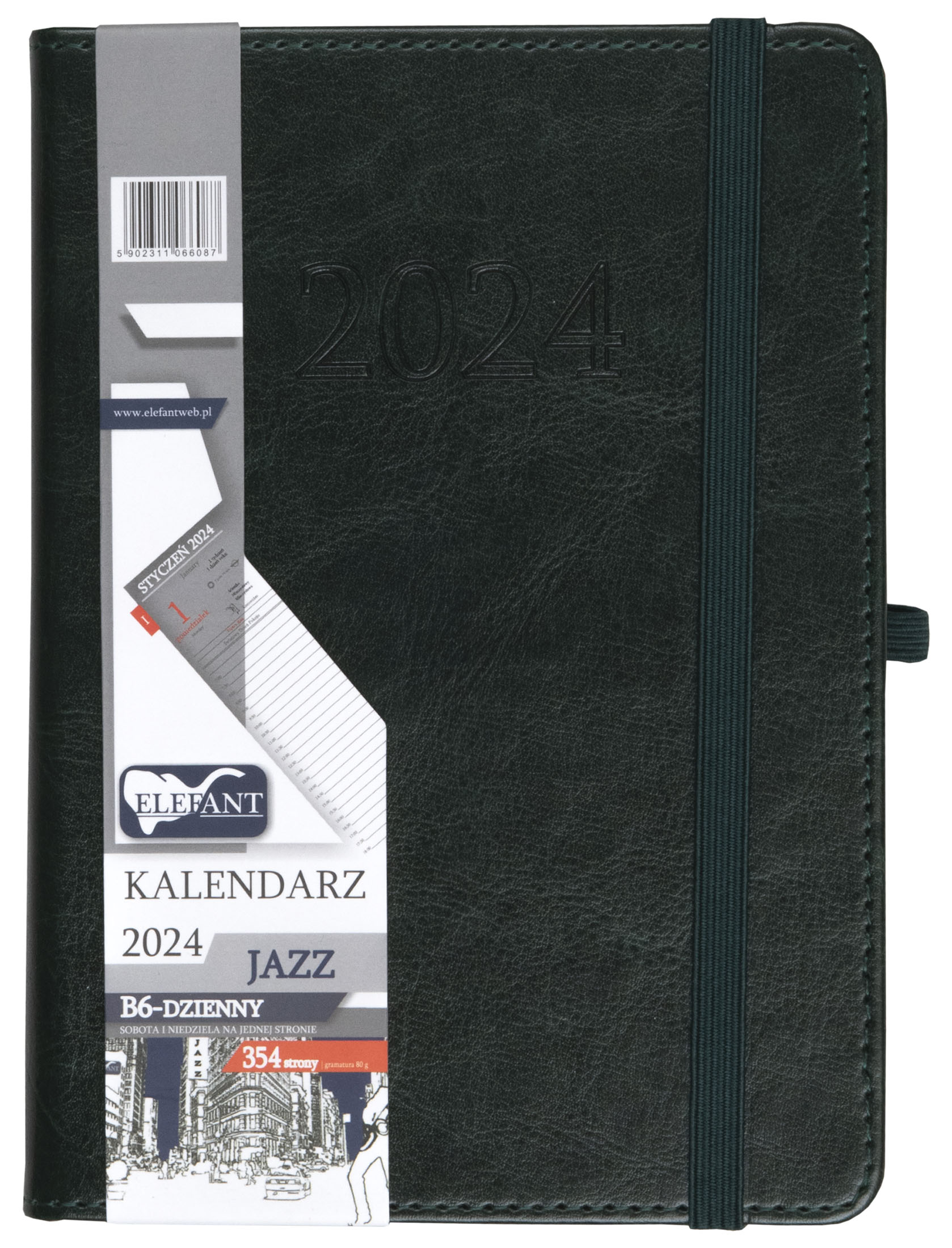 Kalendarz 2024 B6 dzienny Jazz zielony