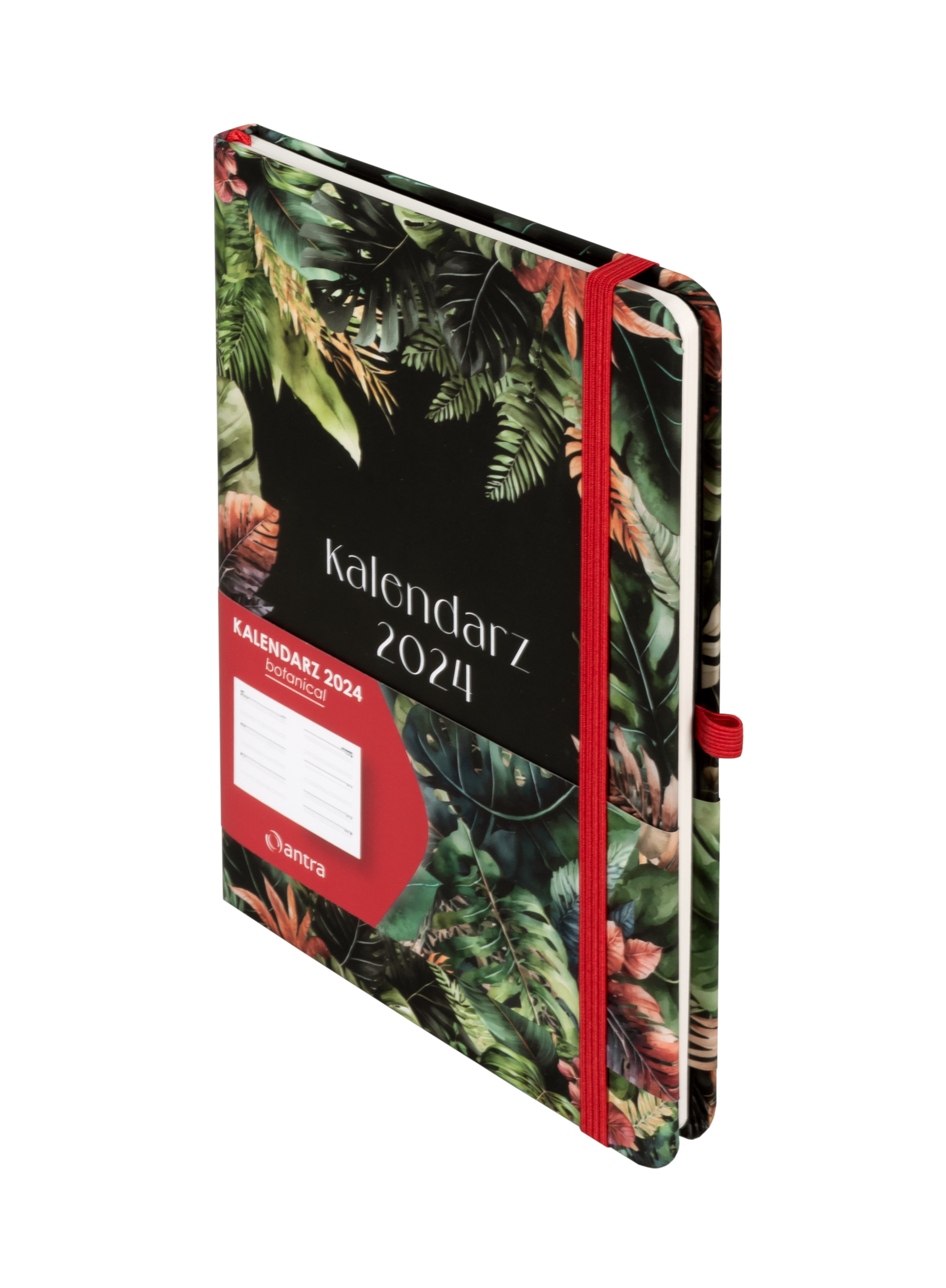 Kolekcja: Botanical Format: B6 Wymiary okładki: 125x176 mm Układ: tydzień do wglądu Ilość stron: 144 Oprawa: twarda Materiał: papier Gramatura papieru: 80g Kolor papieru: chamoise Dodatki: plan roku 2024, ważne wydarzenia, skorowidz adresowy, notatki Pionowa gumka zamykająca: w kolorze czerwonym Wstążka: czerwona Gumka na długopis: tak Zaokrąglone rogi: tak Wyklejka: czarna Koperta: tak
