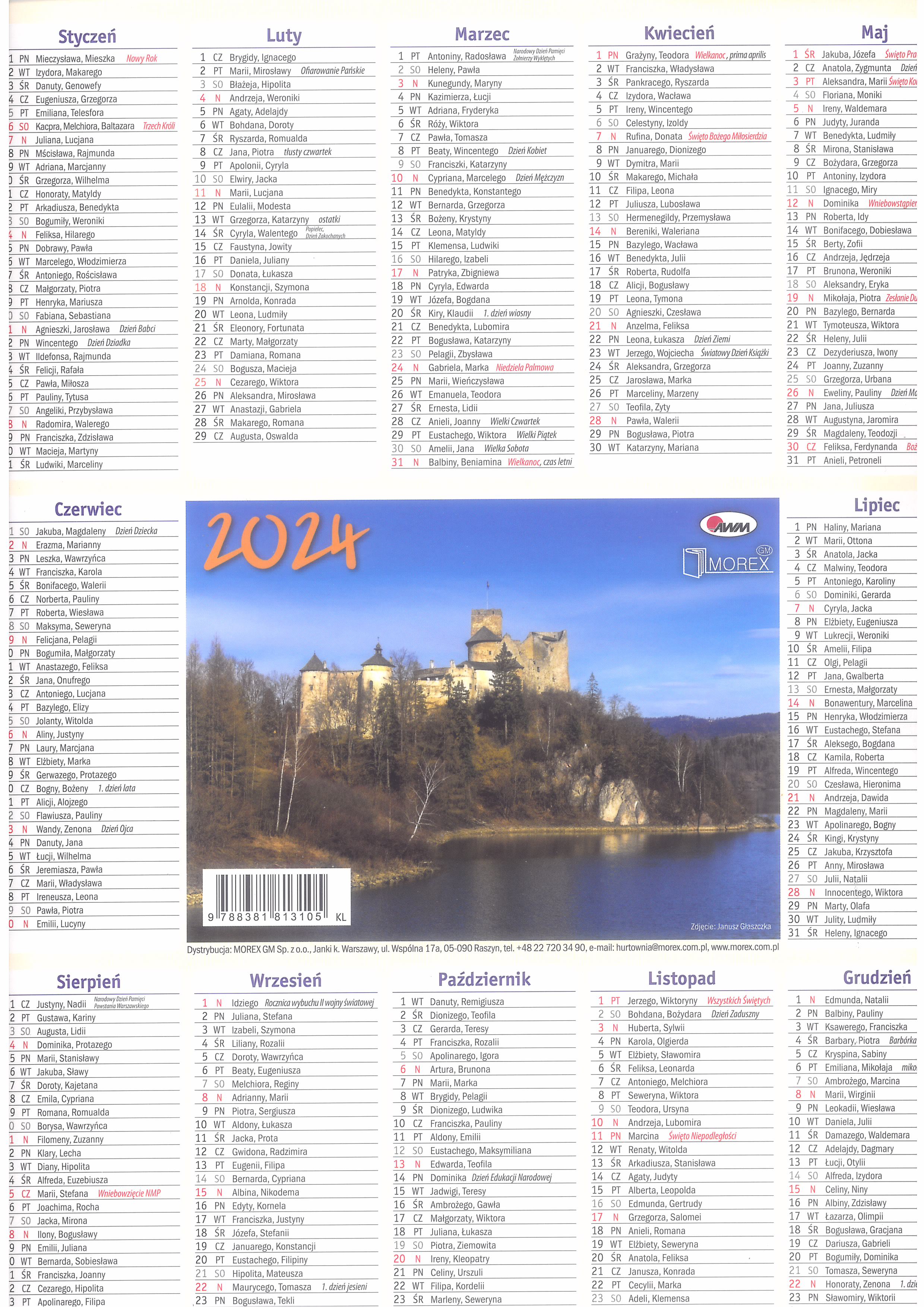 Kalendarz 2024 Listkowy KL ścienny