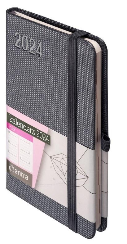 Kolekcja: Rubi Format: A6 Wymiary okładki: 140x90 mm Układ: tydzień do wglądu Ilość stron: 144 Oprawa: twarda Materiał: skóra ekologiczna, z fakturą Gramatura papieru: 80g Kolor papieru: off white Dodatki: plan roku 2024, ważne wydarzenia, plan miesiąca, skorowidz adresowy, notatki Pionowa gumka zamykająca: w kolorze okładki Wstążka: w kolorze okładki Gumka na długopis: w kolorze okładki Zaokrąglone rogi: tak Wyklejka: czarna Koperta: tak Dostępne kolory: brązowy, grafitowy, niebieski, różowy, fioletowy