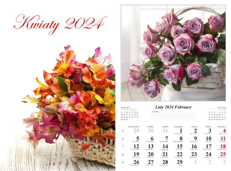 Kalendarz 2024 Ścienny dwustronny Kwiaty