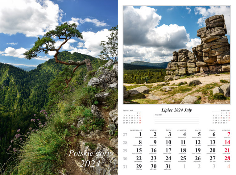 Kalendarz 2024 Ścienny wieloplanszowy Polskie góry