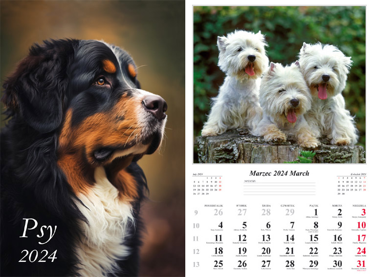 Kalendarz 2024 Ścienny wieloplanszowy Psy